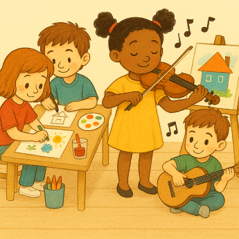 Actividades creativas de dibujo y pintura, en las que los niños desarrollan su imaginación plasmándola a través del dibujo.