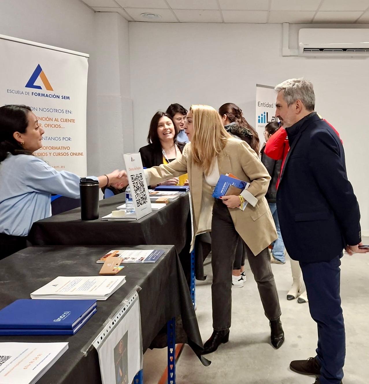 La concejala de Ciudad Lineal, Nadia Álvarez, ha visitado la quinta edición de la Feria de Empleo del distrito, que se ha desarrollado esta mañana en las instalaciones de INCCO, empresa y fundación dedicada a la selección de personal. Esta iniciativa, organizada por la Agencia para el Empleo de Madrid junto a diversas entidades y el apoyo de la junta municipal, tiene como objetivo mejorar las oportunidades laborales de los asistentes a través de actividades y talleres gratuitos.