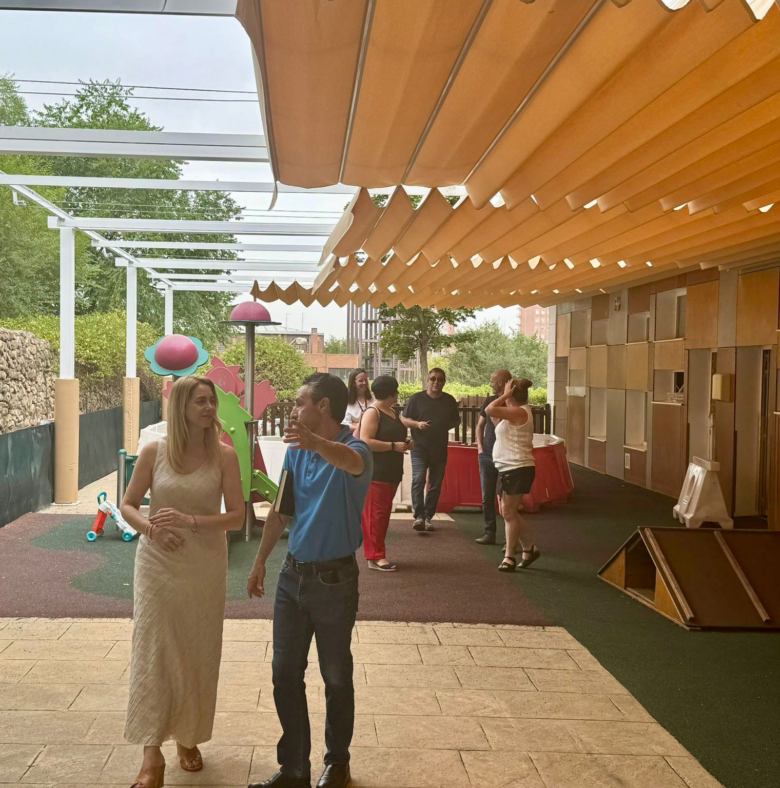 La concejala de Ciudad Lineal, Nadia Álvarez, ha visitado esta mañana la Escuela Infantil Las Azaleas, en donde ha podido comprobar las actuaciones en los pórticos y la instalación de toldos con una inversión de cerca de 80.000 euros. Álvarez ha destacado la importancia de realizar todas estas obras de mejora aprovechando la época estival, “obras que supondrán una importante renovación para continuar con el buen mantenimiento y la conservación de los centros educativos”.
