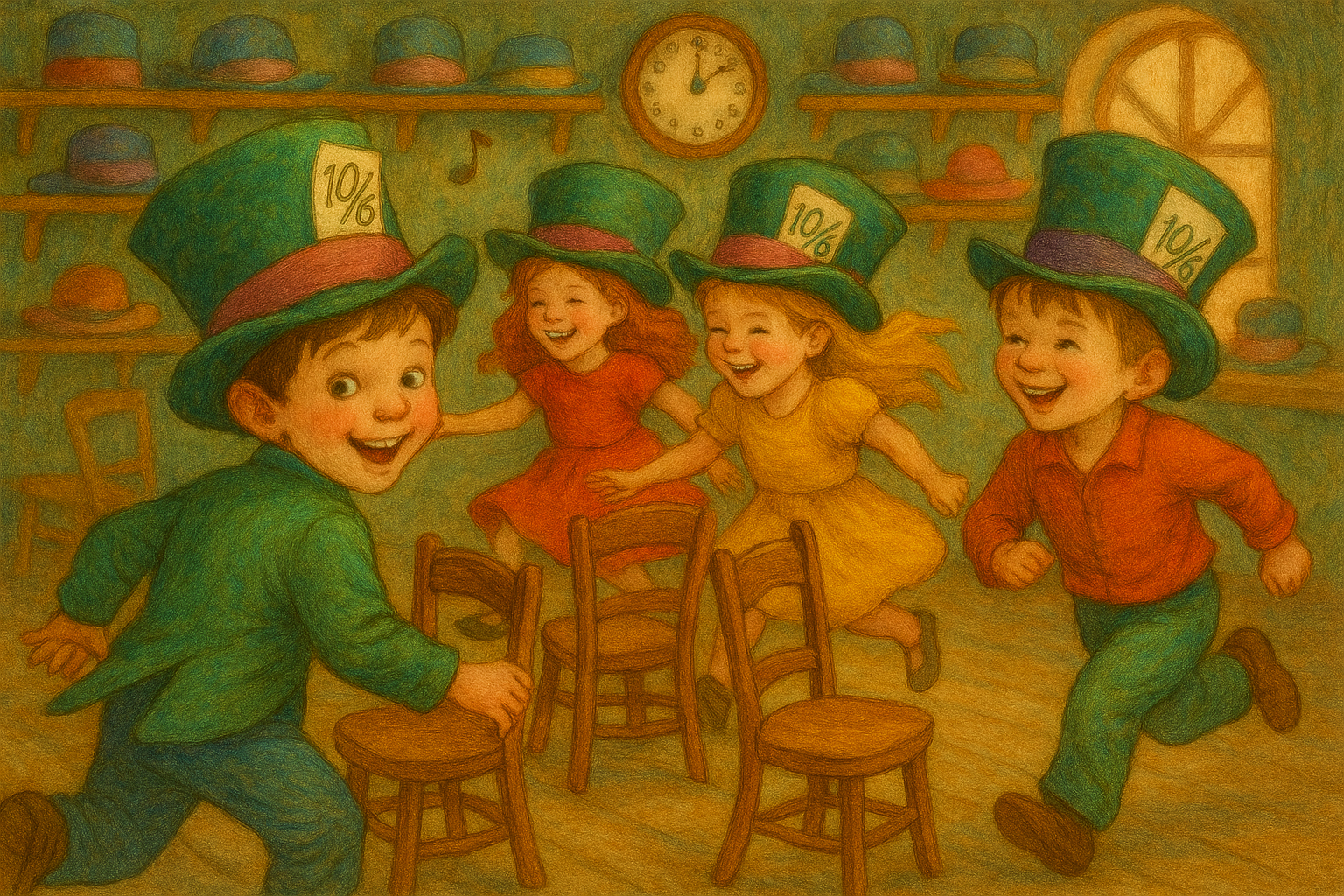 En esta actividad reviviremos la merienda de Alicia con el Sombrerero Loco y el conejo en un juego de sillas muy divertido.