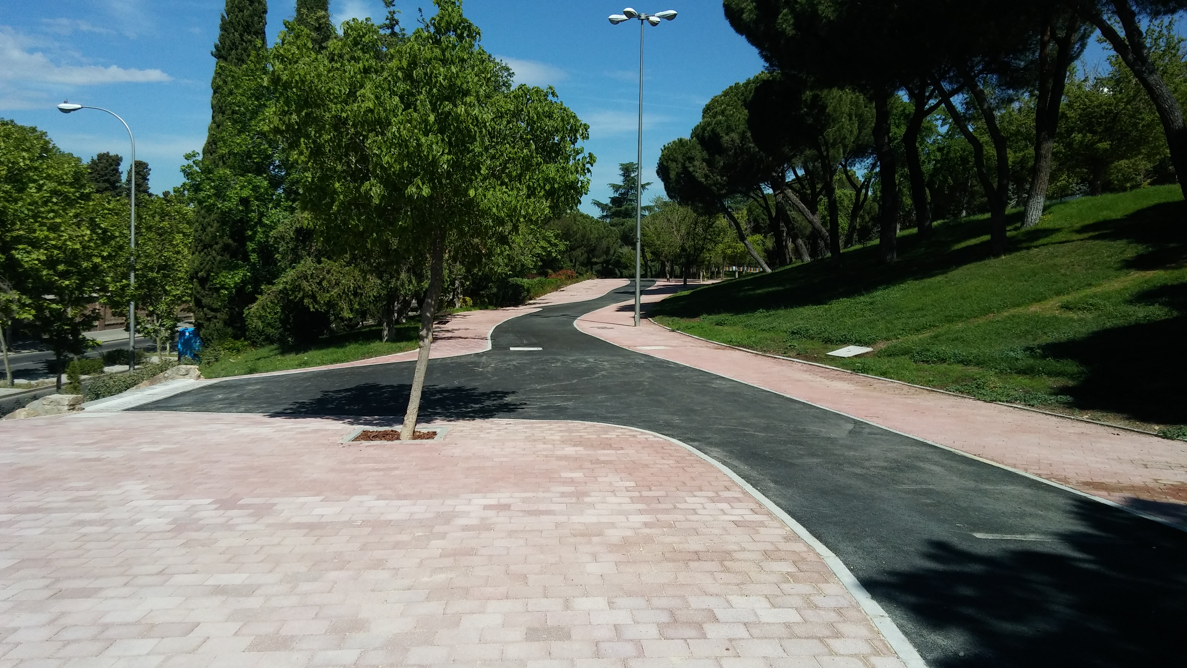 Las sendas, caminos y escaleras se han cubierto con pavimentos porosos que mejoran el tránsito de las personas porque soportan mejor el desgaste y ayudan a la filtración del agua de lluvia. Asimismo se han utilizado criterios de accesibilidad como la instalación de barandillas en las zonas de desnivel. Respecto al mobiliario urbano, se han dispuesto nuevas papeleras, bancos y soportes para bicicletas de acero inoxidable. También se han reparado las jardineras estropeadas y se han delimitado tres áreas infantiles.