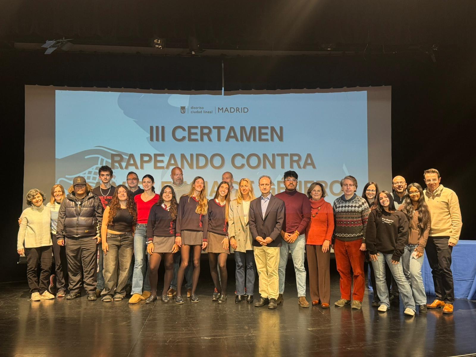 El jurado, atendiendo a criterios como la originalidad del proyecto, la letra, la música y la escenografía, ha concedido el primer premio al IES San Juan Bautista, el segundo al IES Salvador Dalí, el tercero al Colegio Ramón y Cajal y el cuarto al IES Francisco de Goya. Podían participar en el certamen estudiantes de 1º a 4º de ESO y 1º de Bachillerato de todos los centros educativos de Ciudad Lineal, públicos, concertados y privados, presentando un vídeo de rap de un máximo de tres minutos. A través de sus letras, los participantes han compartido vivencias, reflexiones, sueños y mensajes que nacen de su manera de ver y sentir el mundo.