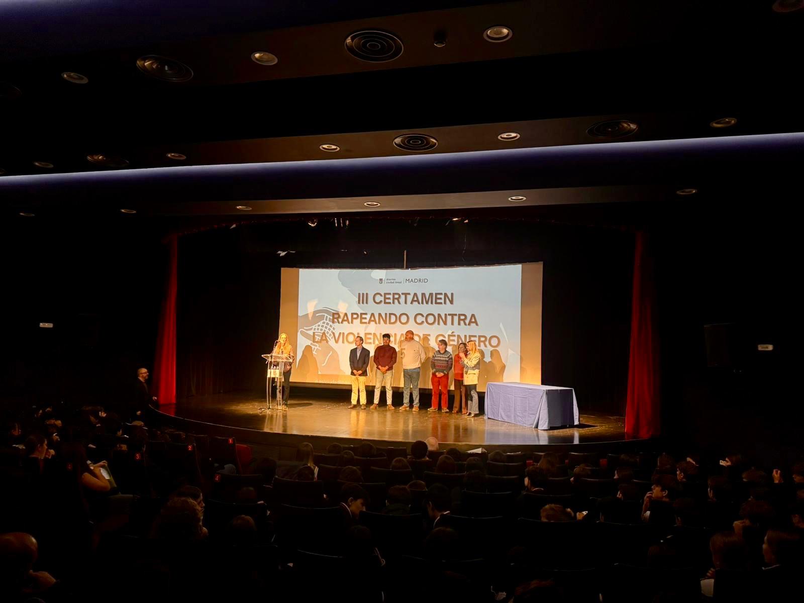 La concejala de Ciudad Lineal, Nadia Álvarez, ha presidido hoy el acto de entrega de premios de la tercera edición del certamen escolar ‘Rapeando contra la violencia de género’, organizado por la junta municipal con motivo del 25N, Día Internacional para la Eliminación de la Violencia contra las Mujeres. Álvarez ha subrayado que este encuentro, celebrado en el Centro Cultural San Juan Bautista, nace con el objetivo de “sensibilizar a la población más joven ante la problemática social que supone la violencia de género”, además de “estimular y desarrollar los valores de solidaridad, compromiso, cooperación, trabajo en equipo y expresión artística”.