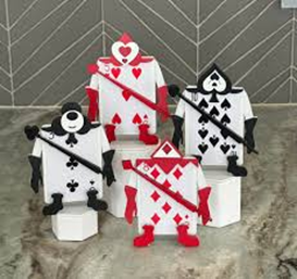 Un taller basado en los personajes de Lewis Carroll, donde las picas son jardineros, los tréboles soldados, los diamantes cortesanos y los corazones la familia real.