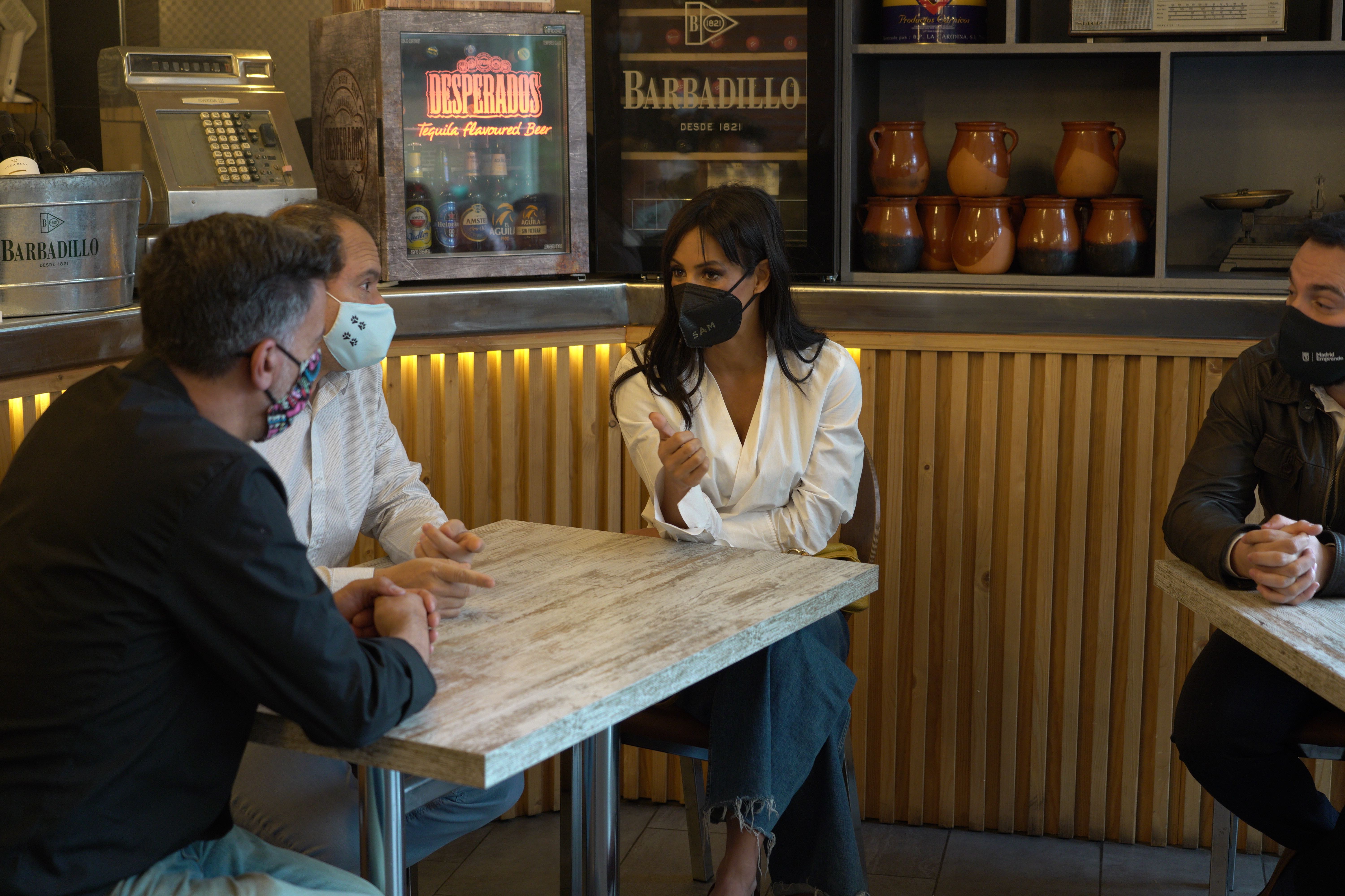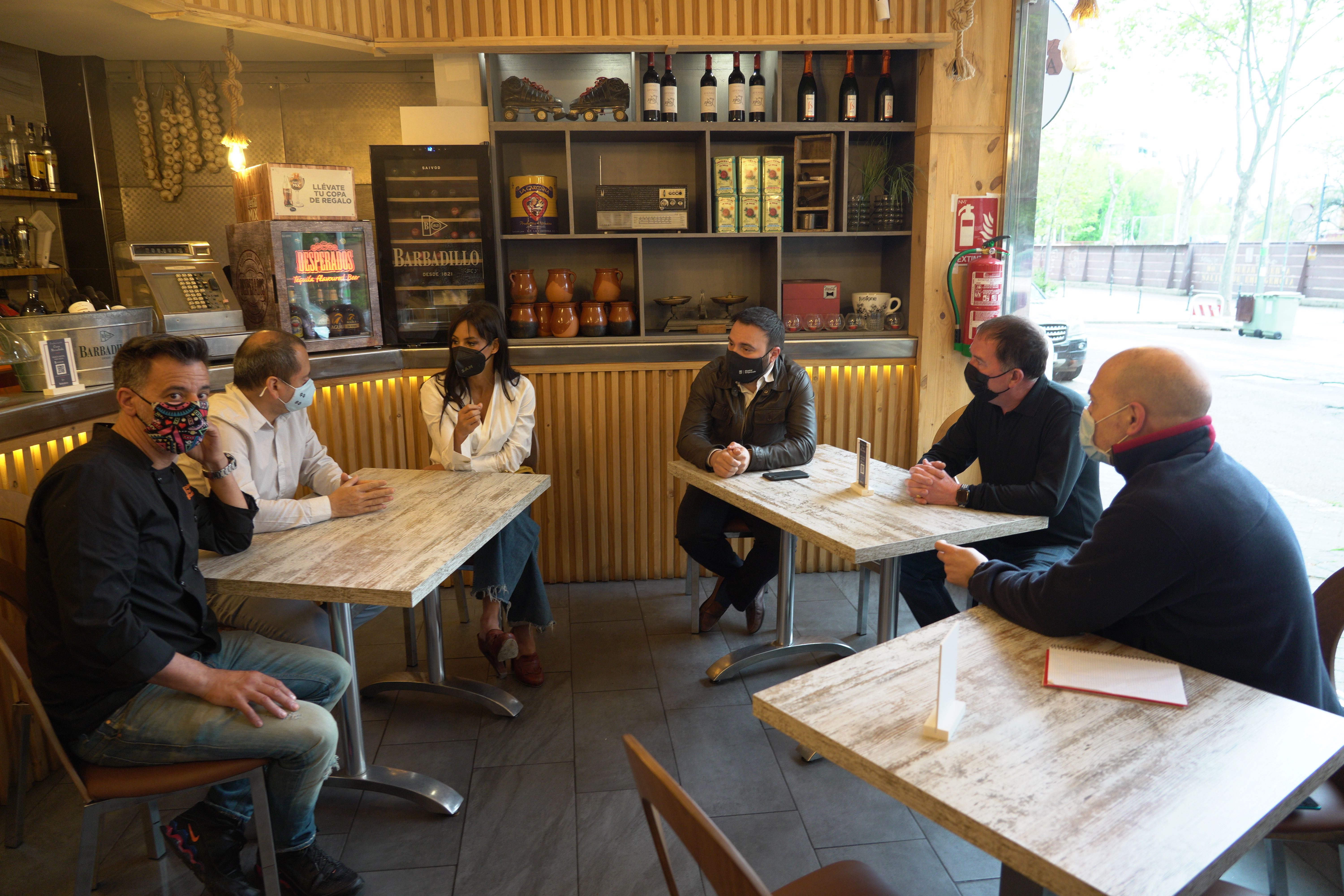 La vicealcaldesa de Madrid, Begoña Villacís, y el concejal del distrito de Ciudad Lineal, Ángel Niño, han mantenido hoy una reunión con hosteleros y comerciantes del barrio de San Pascual para conocer el alcance que la crisis de la COVID-19 ha provocado en sus negocios e informarles de las ayudas que tienen a su disposición en el Ayuntamiento de Madrid.