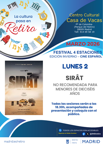 - Lunes 2 de marzo: SIRÂT. No recomendada para menores de 16 años.