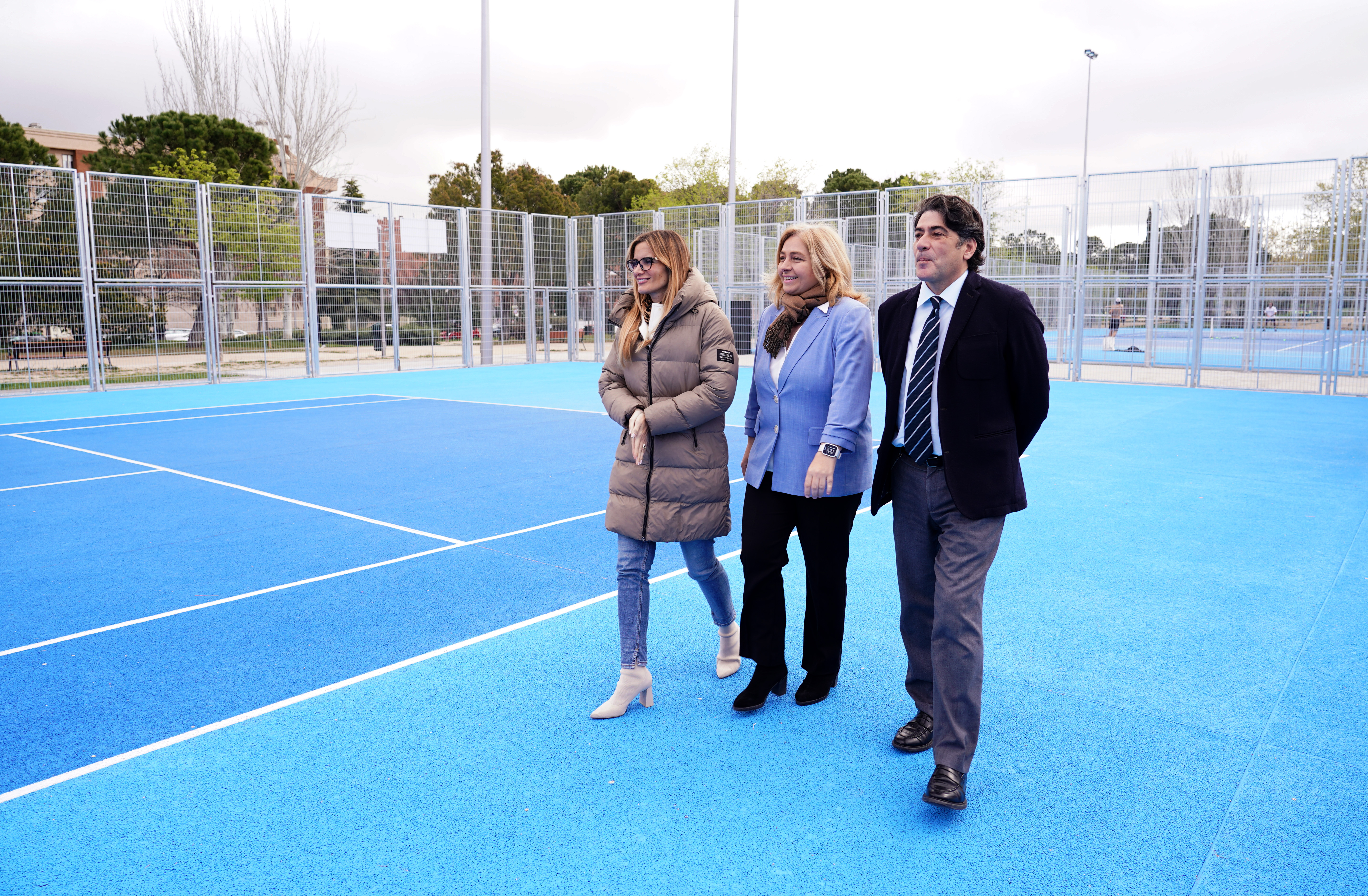 - Sanz, acompañada del concejal del distrito, David Pérez, y de la concejala delegada de Deporte, Sonia Cea, ha visitado la instalación deportiva municipal Los Llanos, con dos pistas de tenis recién renovadas tras una inversión de 200.000 euros