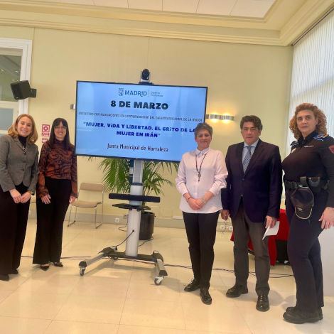 Hortaleza conmemora el Día Internacional de la Mujer con propuestas culturales y deportivasEl concejal de Hortaleza, David Pérez, ha presidido hoy el acto ‘Mujer, vida y libertad. El grito de la mujer en Irán’, organizado por la junta municipal en el marco de la conmemoración del Día Internacional de la Mujer. Diversas asociaciones, entidades deportivas, instituciones educativas y representantes de cuerpos policiales han participado hoy en este foro planteado para dar voz a quienes trabajan por la igualdad real, así como visibilizar la situación de las mujeres en el mundo, “sobre todo en aquellos lugares donde los derechos humanos no se respetan”, ha explicado el concejal.