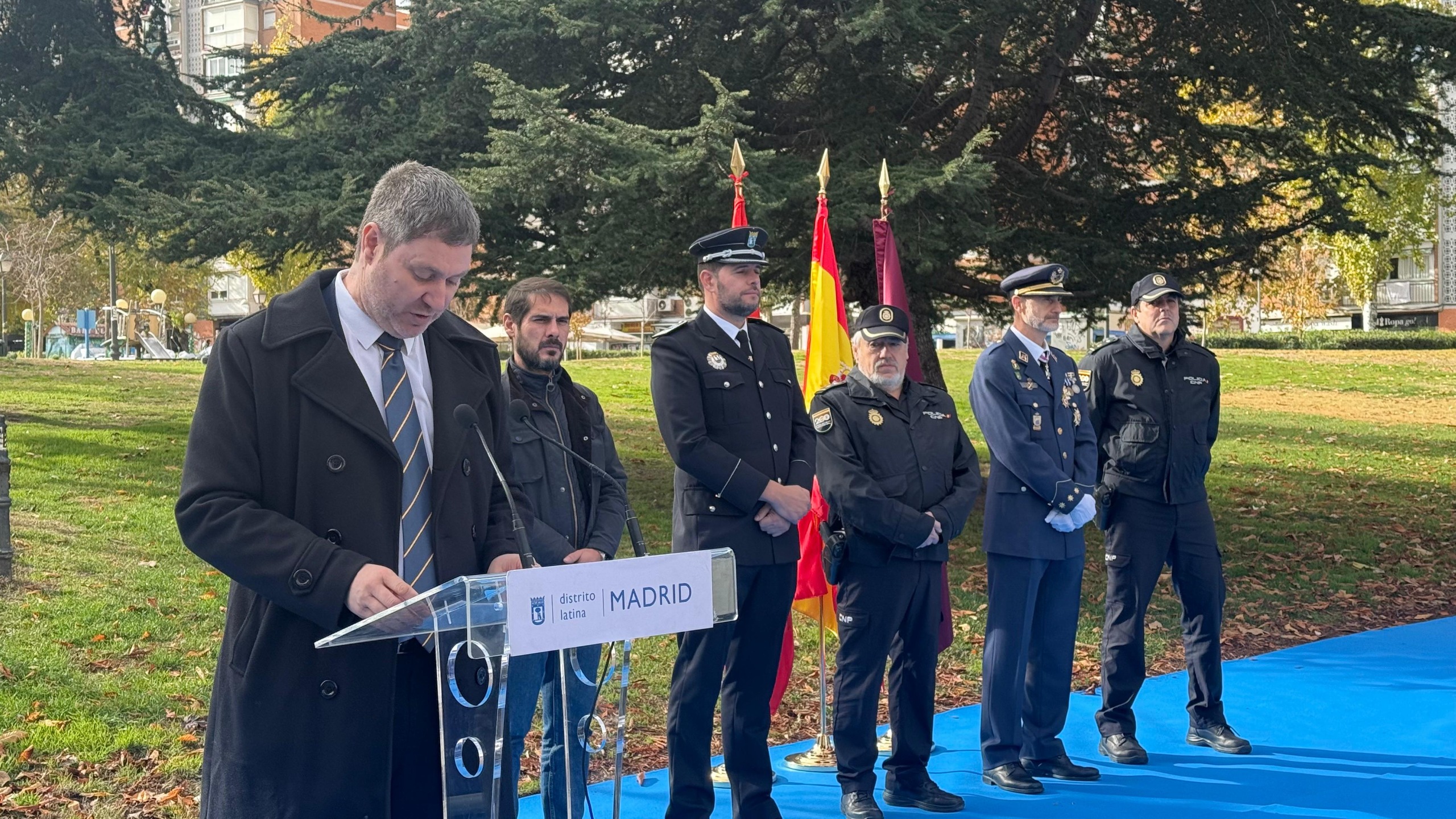 En la conmemoración, que ha contado con la presencia de representantes de la Unidad Integral de Policía Municipal de Latina y de la Policía Nacional, se ha realizado una ofrenda floral y han intervenido portavoces de los grupos políticos municipales. /