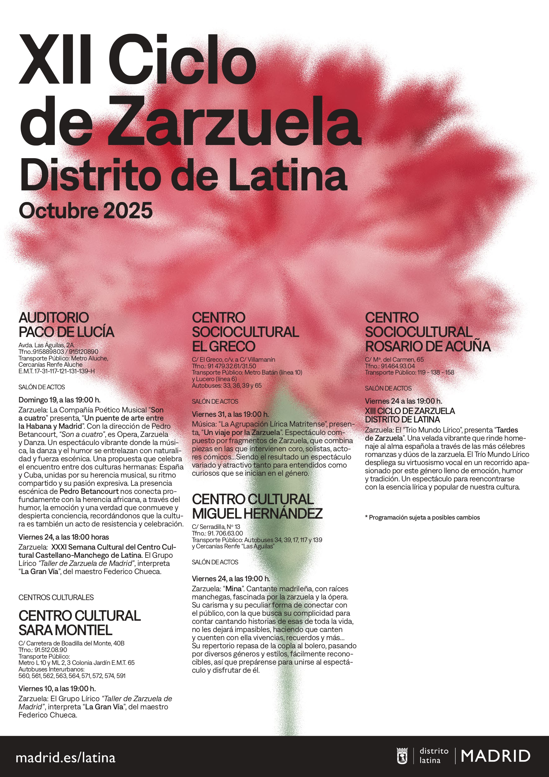 El Distrito de Latina se viste de gala para recibir una nueva edición de su ya tradicional Ciclo de Zarzuela, que este año celebra su decimotercera edición.