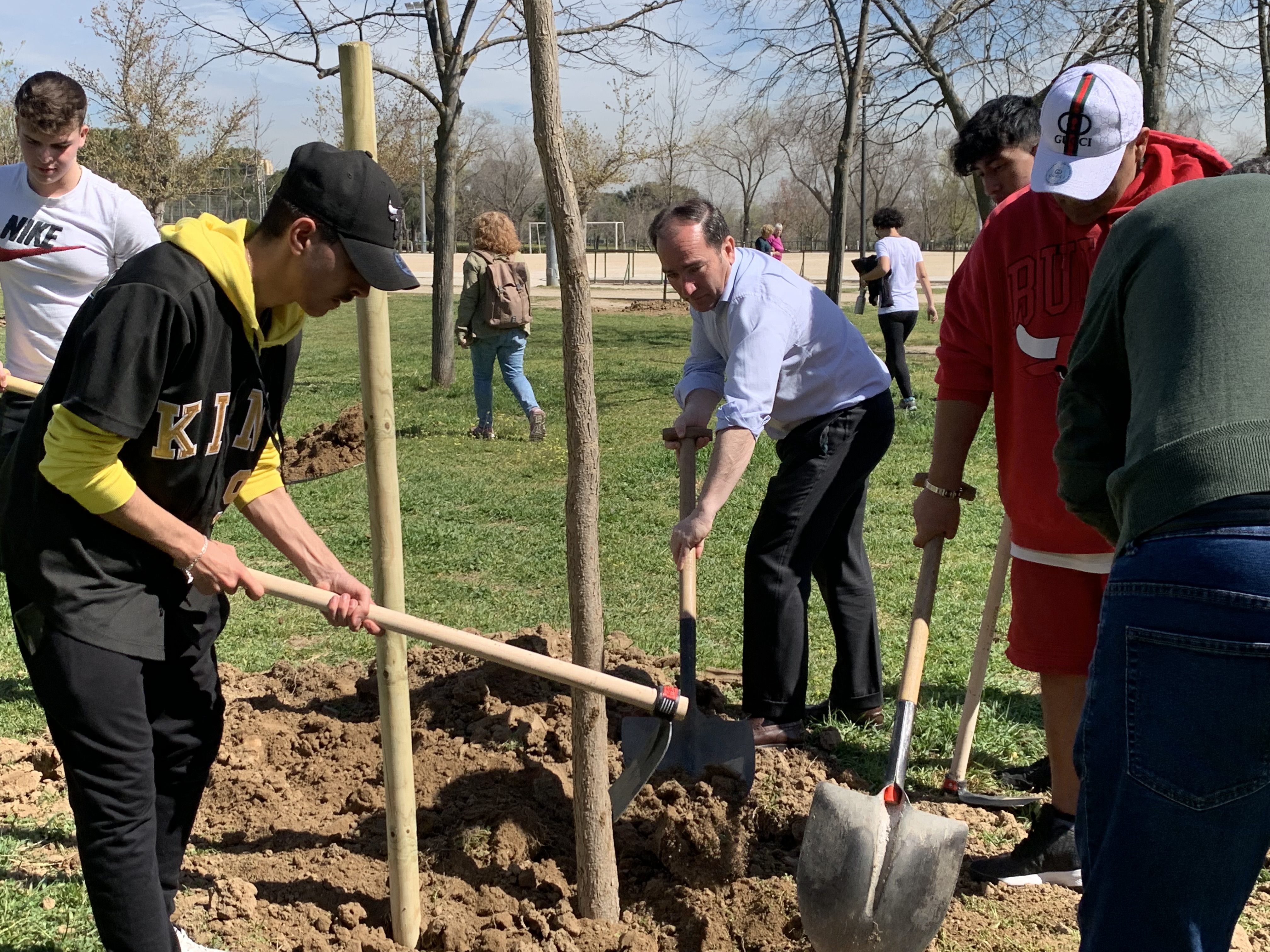 El Ayuntamiento de Madrid ha celebrado el Día Mundial del Árbol con una plantación intergeneracional en el parque de Las Cruces a la que ha asistido el delegado de Medio Ambiente y Movilidad, Borja Carabante. En ella han participado personas usuarias de los centros municipales de mayores de Carabanchel y estudiantes del Instituto de Enseñanza Secundaria Leonardo Da Vinci de Latina. Esta acción tiene como objetivo concienciar sobre la importancia que tienen los espacios verdes en el entorno urbano y fomentar la interrelación de distintas generaciones.