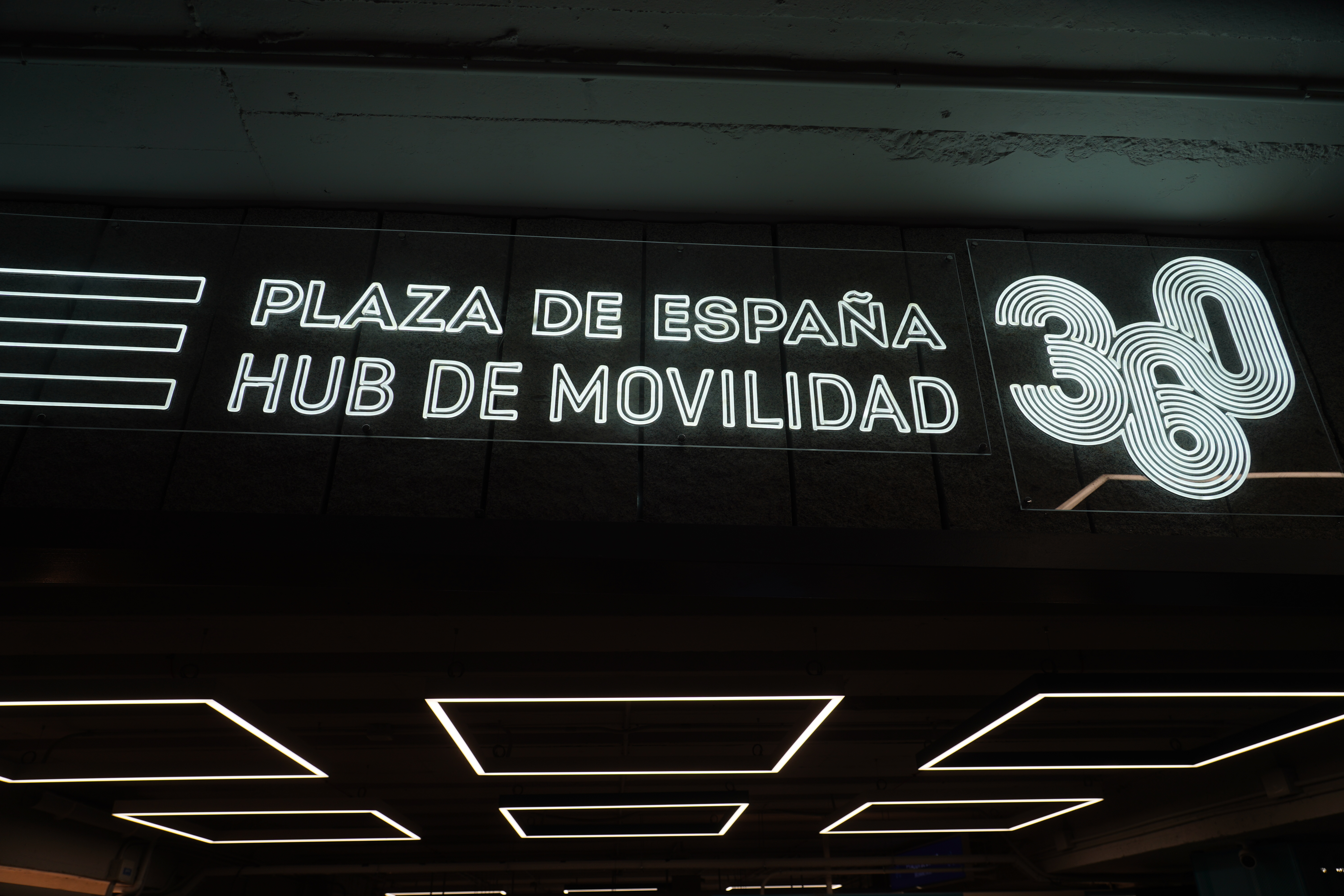 De acuerdo con el diseño de la señalética presente en otros hubs gestionados por EMT Madrid, Plaza de España 360 da prioridad al color corporativo Madrid 360, valiéndose de los mismos códigos gráficos de identidad de marca comunes a todos los espacios que conforman la Estrategia de Sostenibilidad del Ayuntamiento de Madrid. El hub de movilidad Plaza de España 360 va más allá de una instalación de servicio, es una pieza estratégica del ecosistema de la movilidad madrileña porque su objetivo no es solo ofrecer nuevos servicios, sino reordenar los flujos de movilidad del centro, liberar superficie para uso peatonal y seguir avanzando hacia la neutralidad climática.
