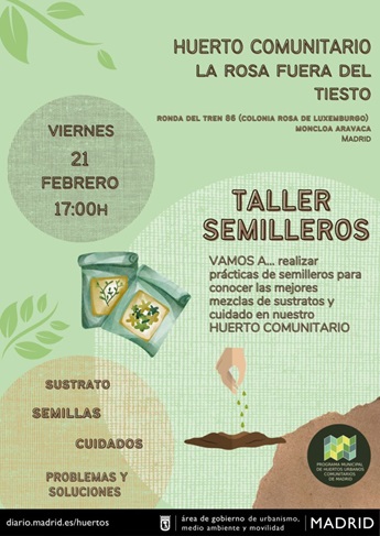 Lugar de celebración: Huerto Urbano Comunitario La Rosa Fuera del Tiesto, Ronda del Tren 86 (Colonia Rosa de Luxemburgo), Moncloa-Aravaca, Madrid.