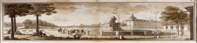 A mediados del siglo XVII el límite del caserío crece en la inmediaciones del paseo, aunque habrá que esperar a la llegada de los borbones en 1700, cuando se intenta dar a la villa una nueva imagen, donde se suceden las intervenciones, un primer intento se realiza con Fernando VI quien le encarga a J.B. Sachetti en 1745, un proyecto de remodelación del que se llegaron a realizar tres fuentes y la puerta monumental de Recoletos.
