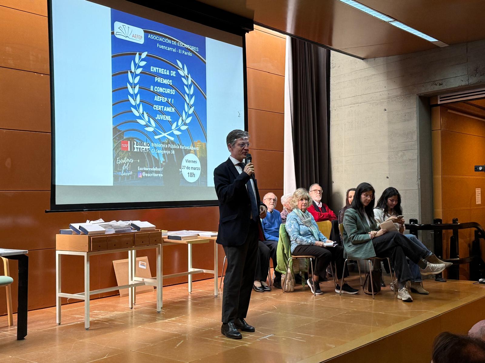 El concejal de Fuencarral-El Pardo, José Antonio Martínez Páramo, ha anunciado esta tarde que la junta municipal organizará este año la segunda Feria del Libro del distrito, durante el acto de entrega de los premios del segundo certamen literario convocado por la Asociación de Escritores del Distrito Fuencarral-El Pardo (AEFEP). En él, ha adelantado, que “la asociación participará de manera activa en la carpa de actividades que la junta municipal instalará para desarrollar una intensa programación que incluye lecturas y presentaciones de obras literarias, así como casetas de exposición y venta de libros”.