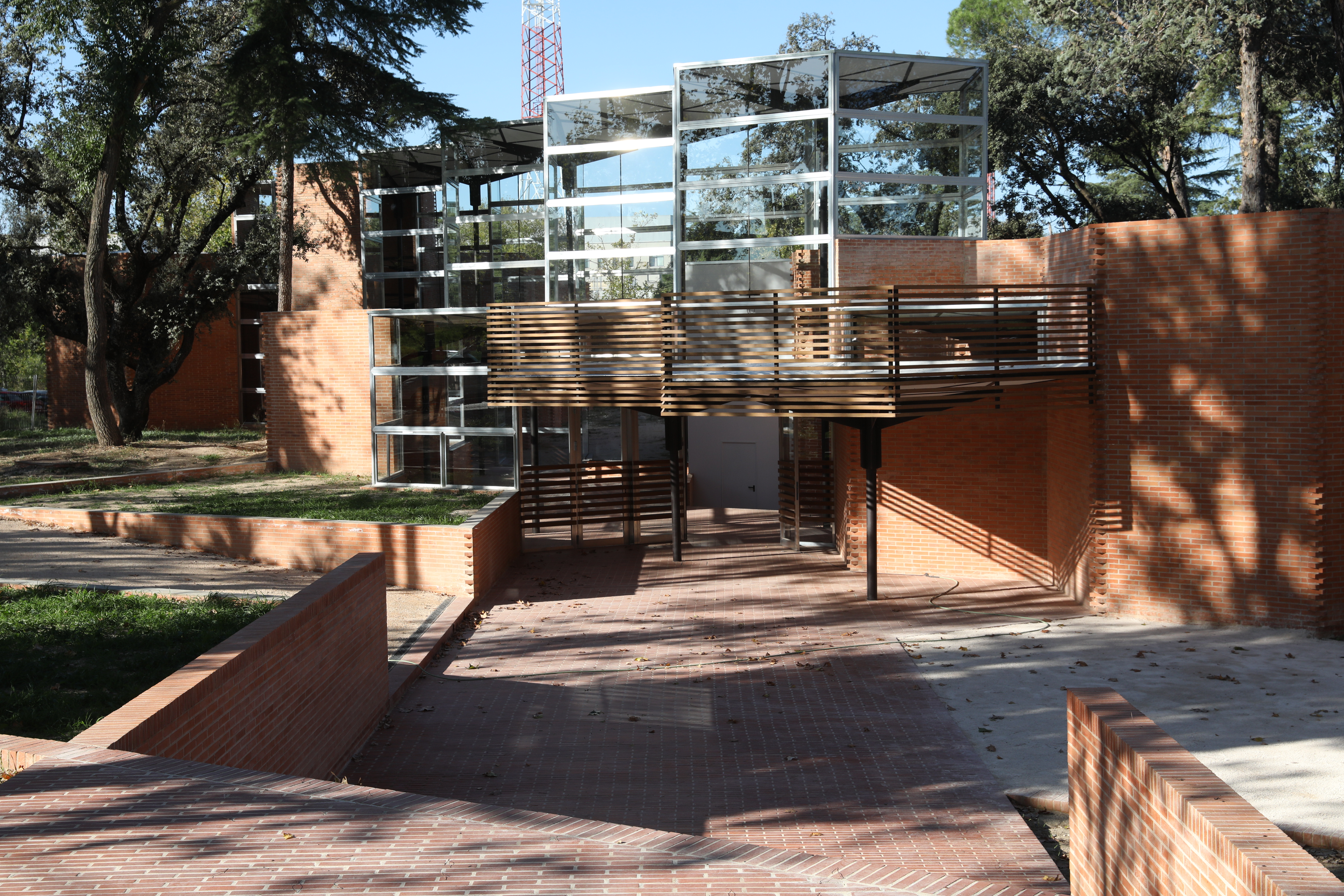 Acero, vidrio, aluminio y ladrillo