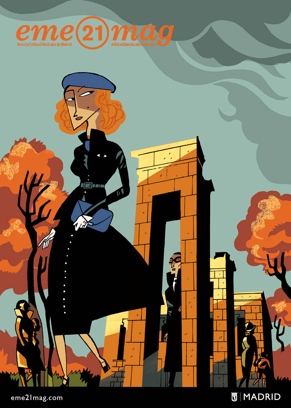 Selva, la detective nacida en las páginas de eme21mag, es la protagonista de la misteriosa portada del número de octubredela revista ilustrada del Área de Cultura, Turismo y Deporte del Ayuntamiento de Madrid. El ilustrador y creador de las aventuras de Selva, Javier Olivares, firma esta escena tan enigmática y cinematográfica en la que aparece un otoñal Templo de Debod. La Noche de Difuntos y el Día de la Hispanidad son los contenidos principales sobre los que gira este número.