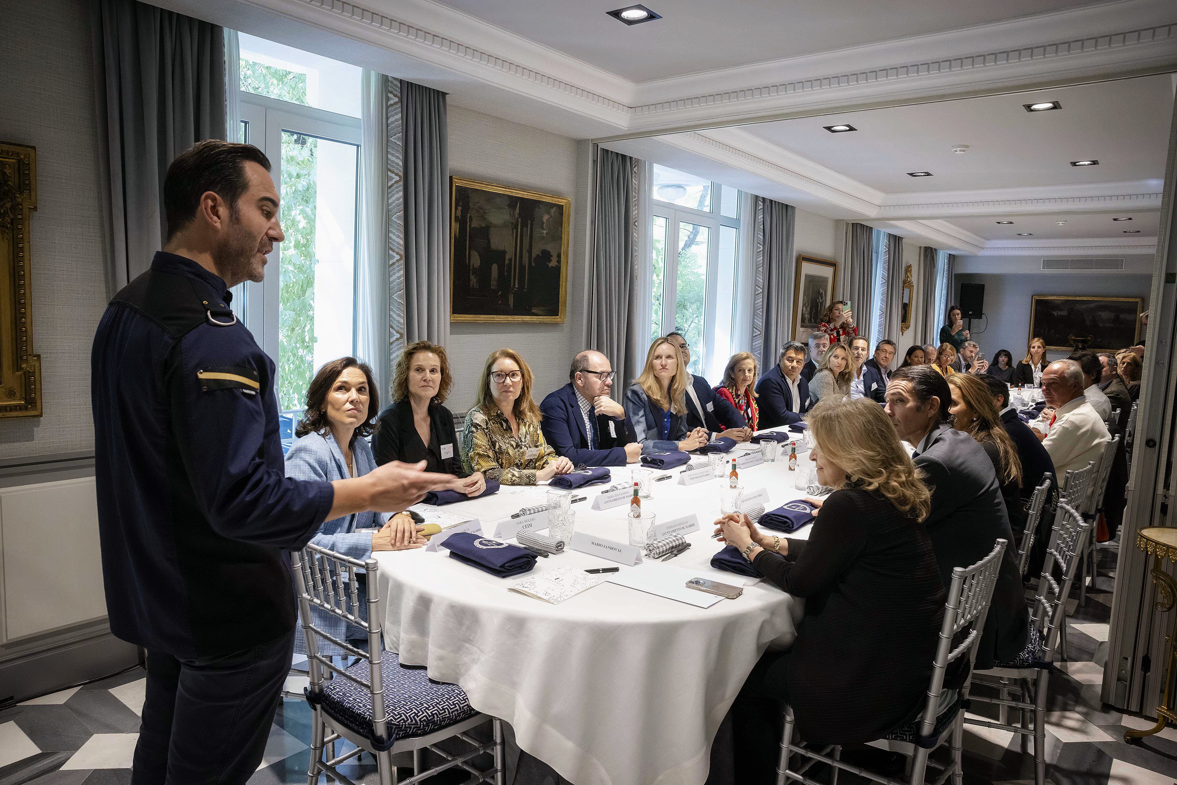 Hidalgo, durante su participación en el encuentro con multinacionales extranjeras asentadas en Madrid, que ha girado en torno a un taller de cocina con rabo de toro impartido por el chef Mario Sandoval
