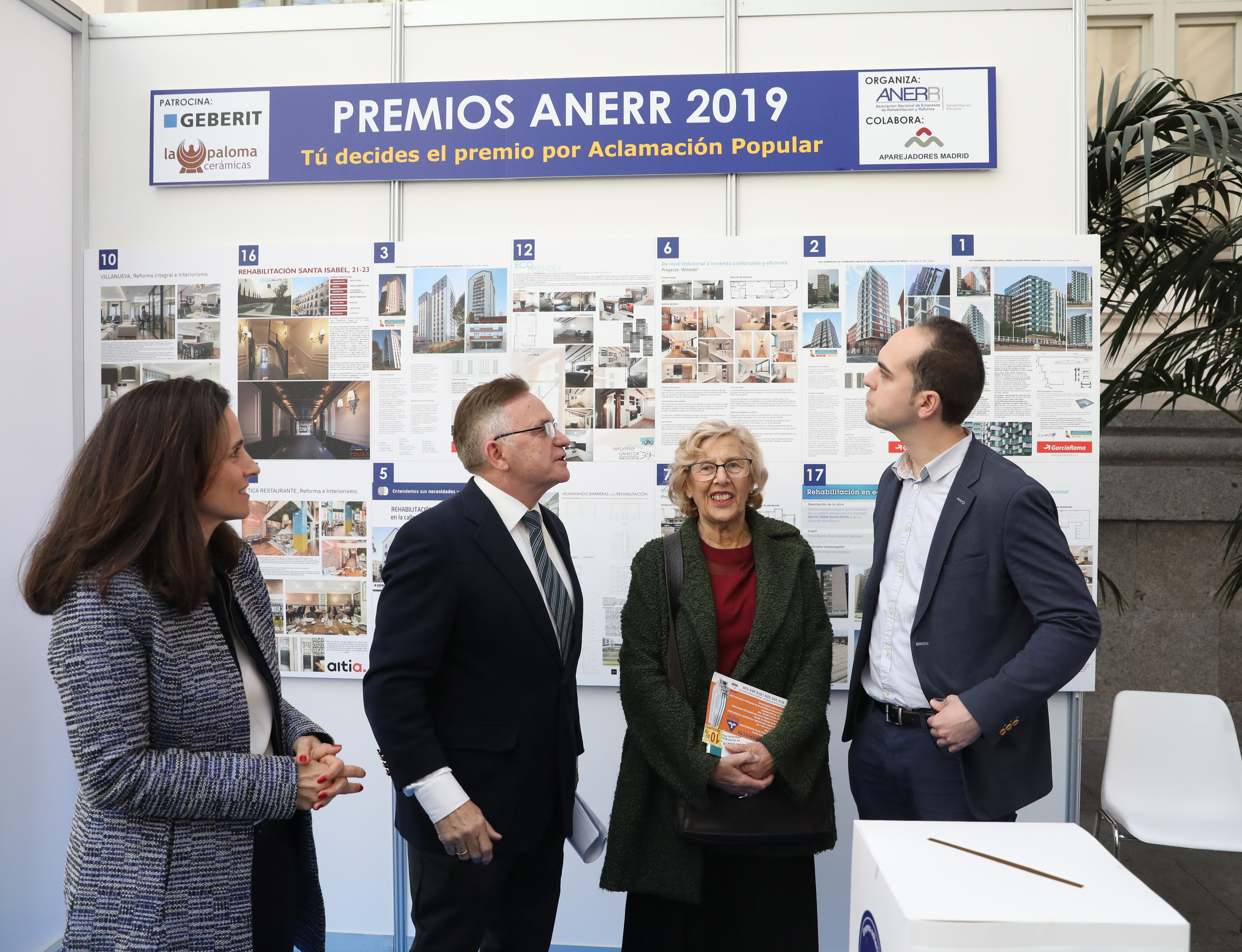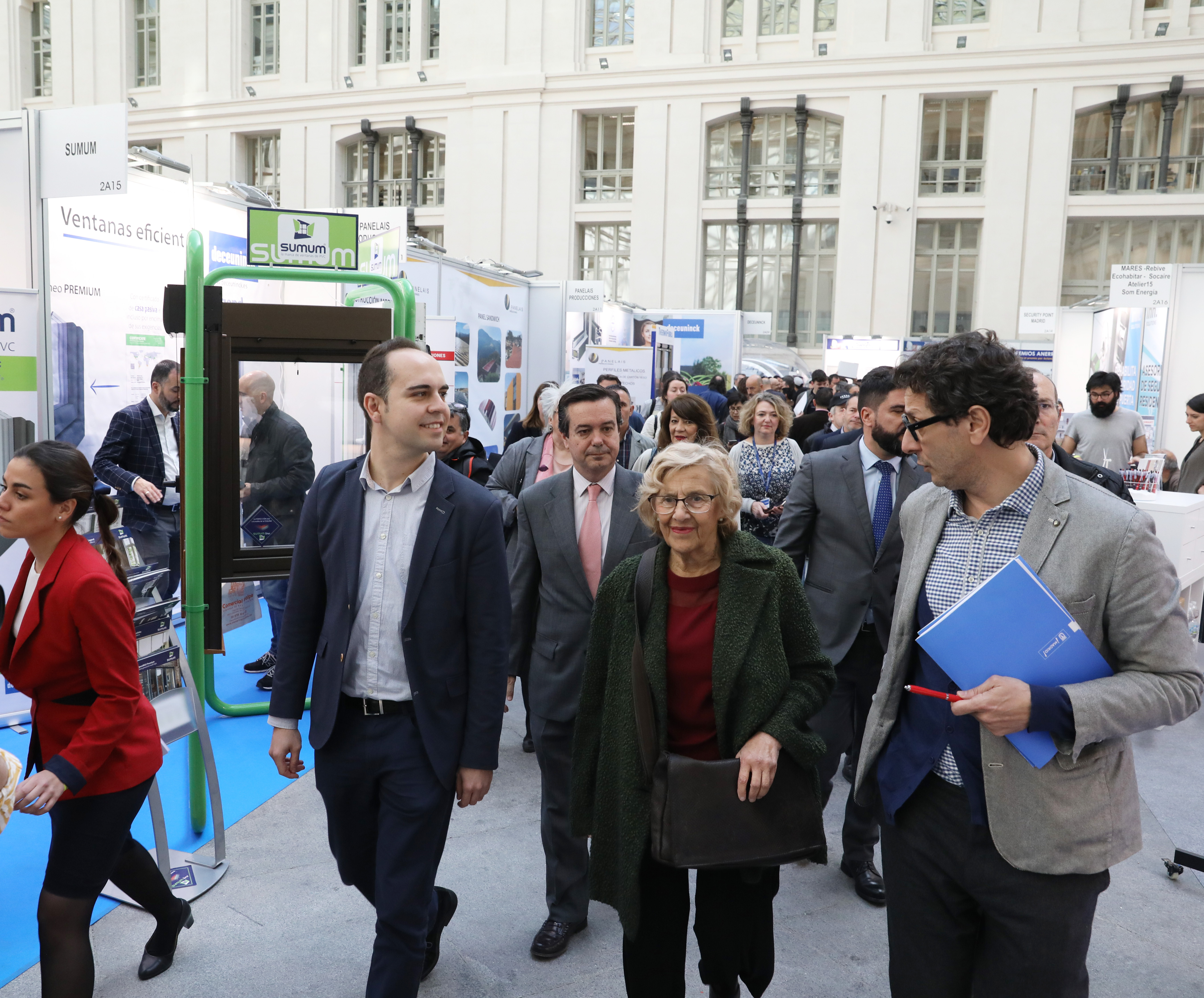 La alcaldesa de Madrid, Manuela Carmena, acompañada del delegado de Desarrollo Urbano Sostenible, José Manuel Calvo, el director general de IFEMA, Eduardo López-Puertas, y el director de la feria, Raúl Calleja, ha visitado esta mañana Rehabitar Madrid 2019, que en la presente edición se celebra bajo el lema “Cuidando tu casa, cuidas de ti”.