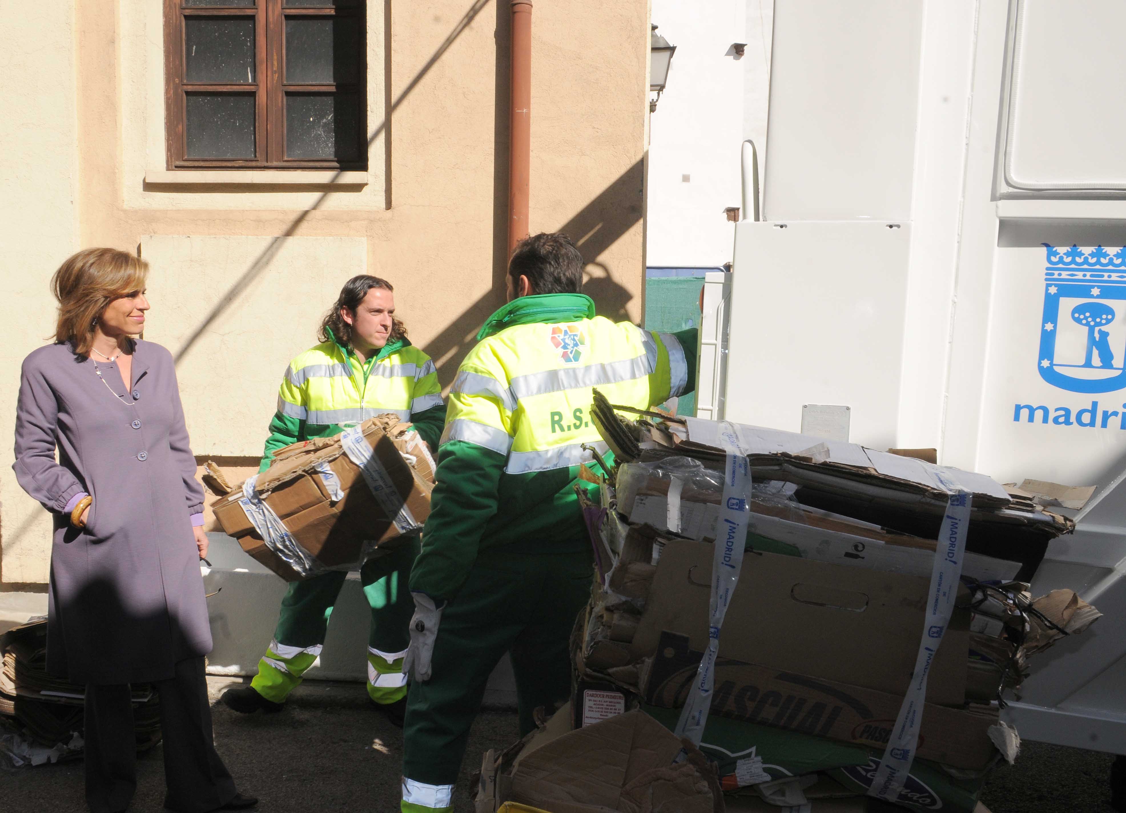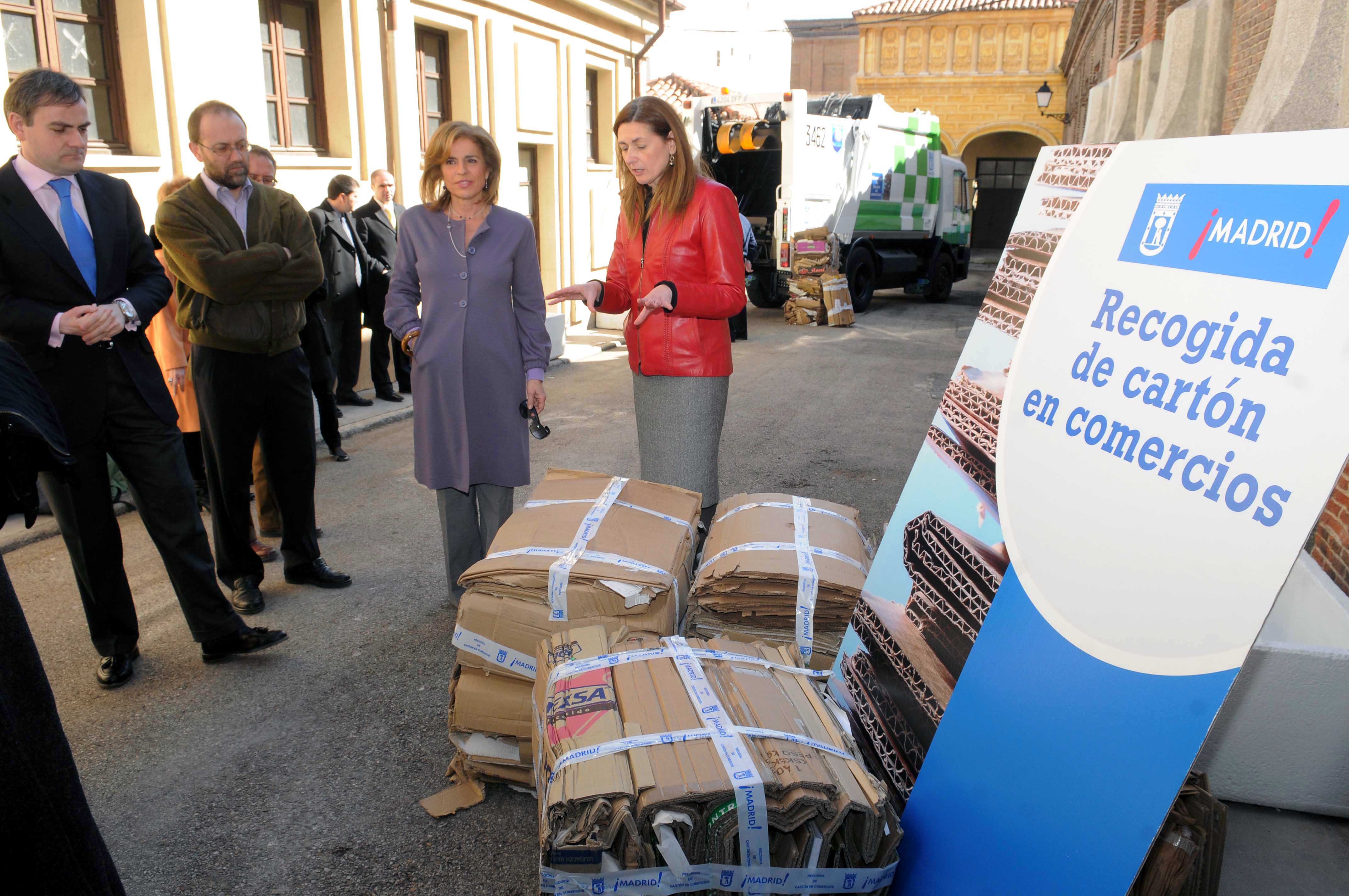 Los comercios también reciclan, y para facilitarles esta labor, el Ayuntamiento ha creado el Servicio de Recogida Selectiva de Cartón para el Pequeño y Mediano Comercio, que se va a poner en marcha el distrito Centro y que hoy ha presentado la delegada de Medio Ambiente, Ana Botella.