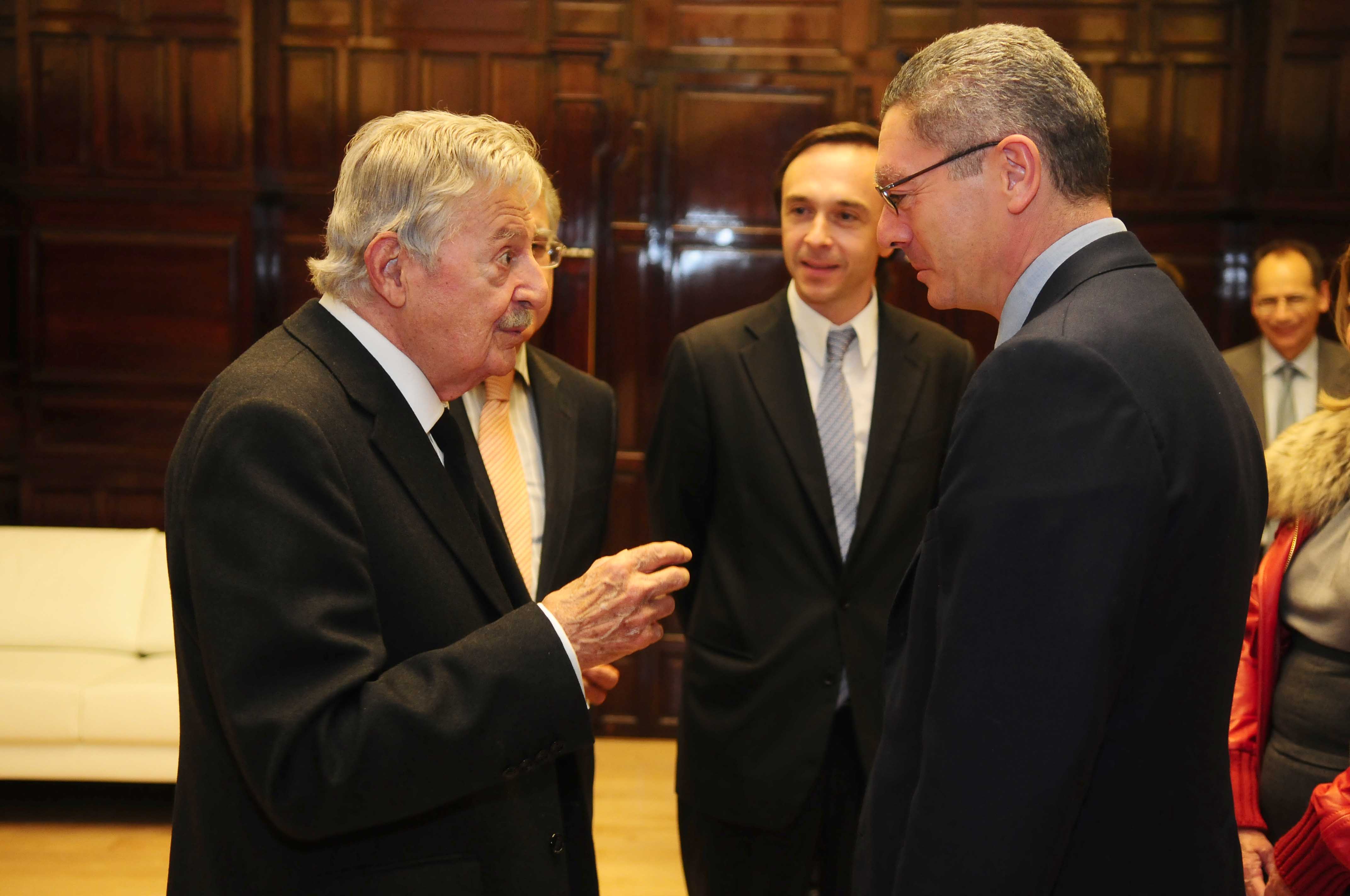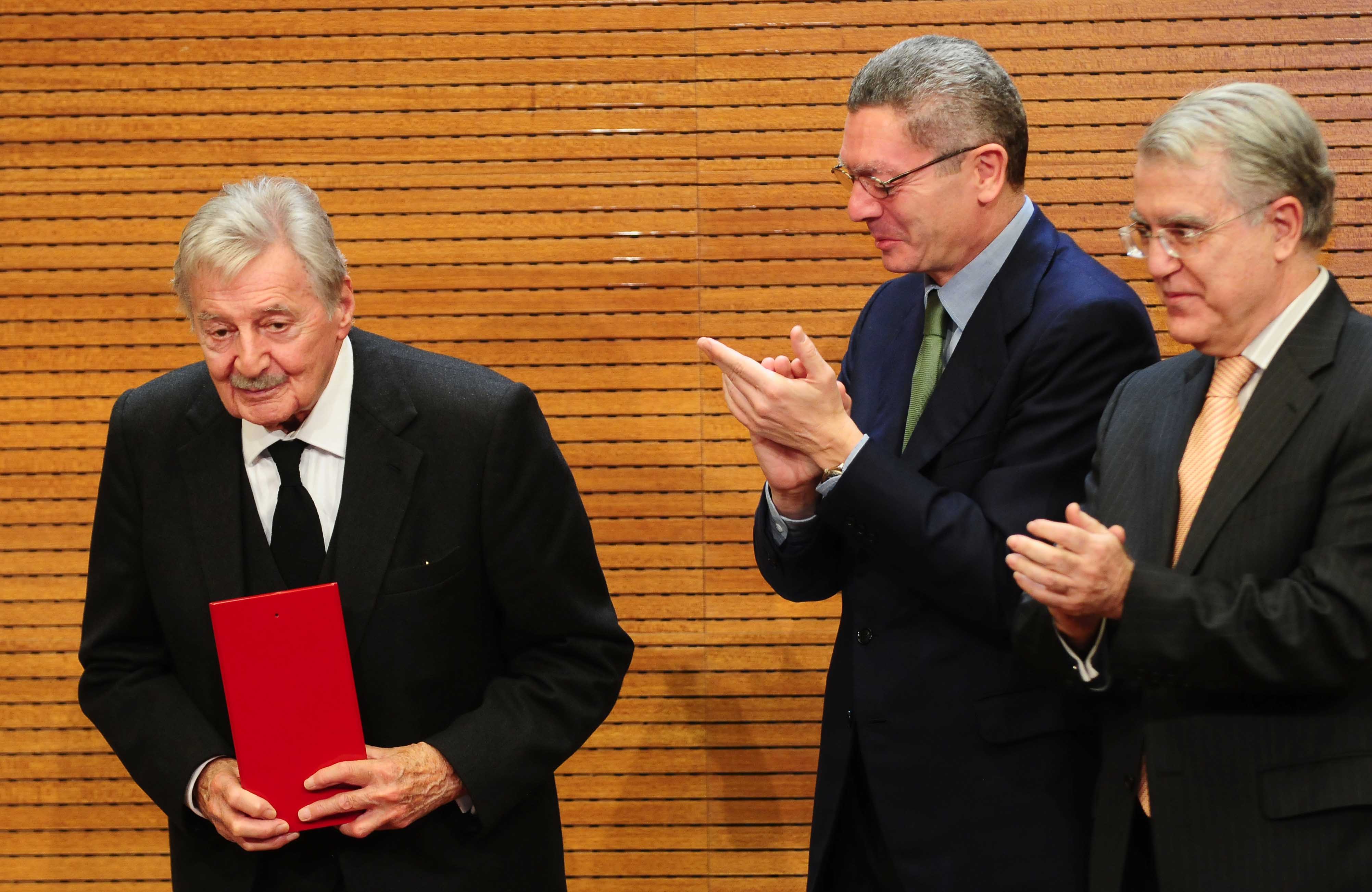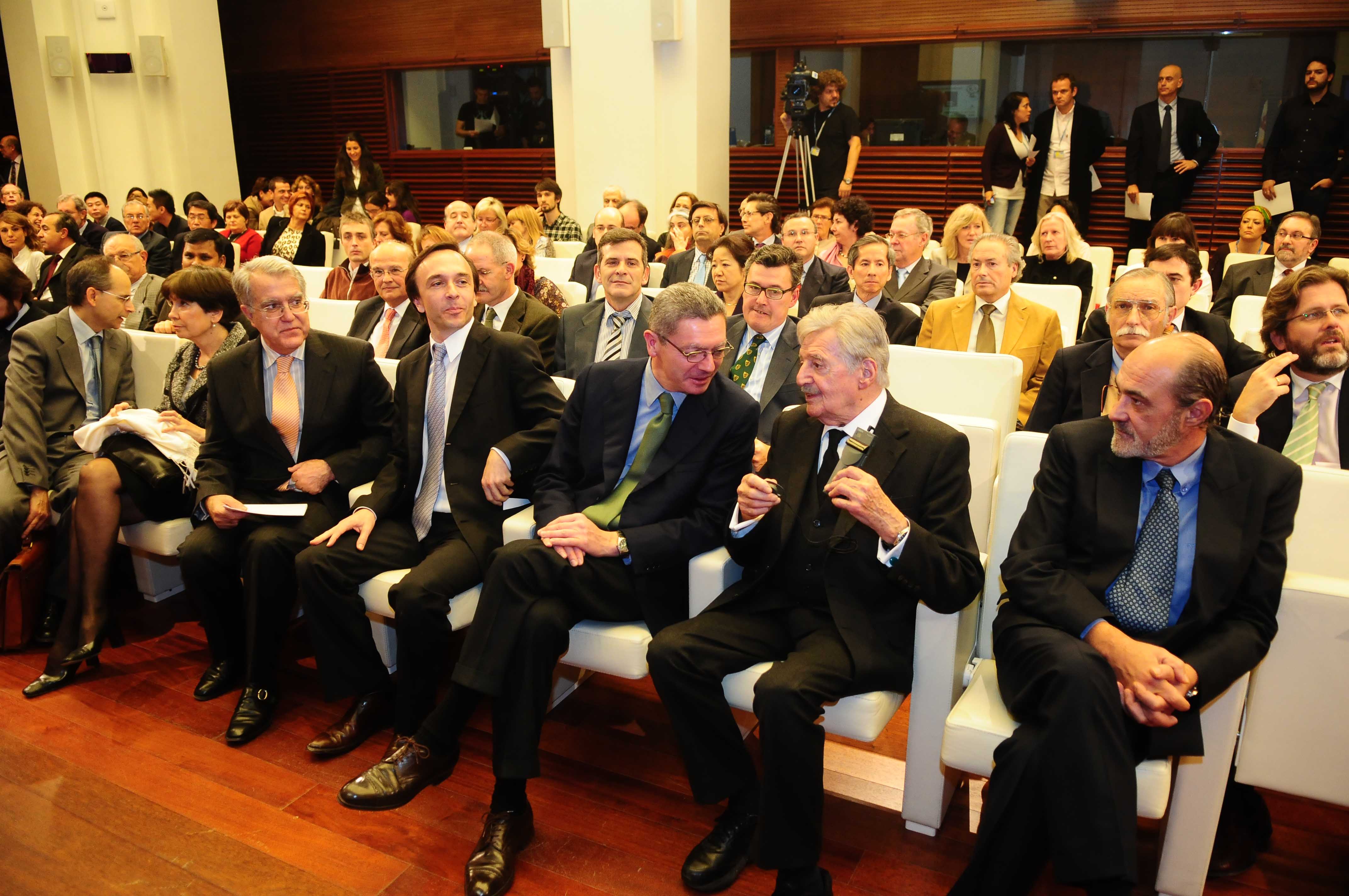 El alcalde, Alberto Ruiz-Gallardón, durante la entrega de los premios de Casa Asia que este año han sido entregados al delegado de la Agencia EFE en Manila, Miguel F. Rovira y al compositor Australiano Peter Sculthorpe
