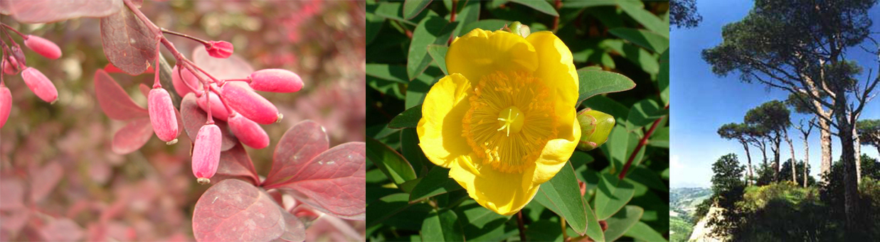 Arbustos y tapizantes | Fotinia, Berberis, Junipero horizontal, Durillo, Agracejo julianae, Hiperico rastrero, Lavanda, Rosa rugosa |