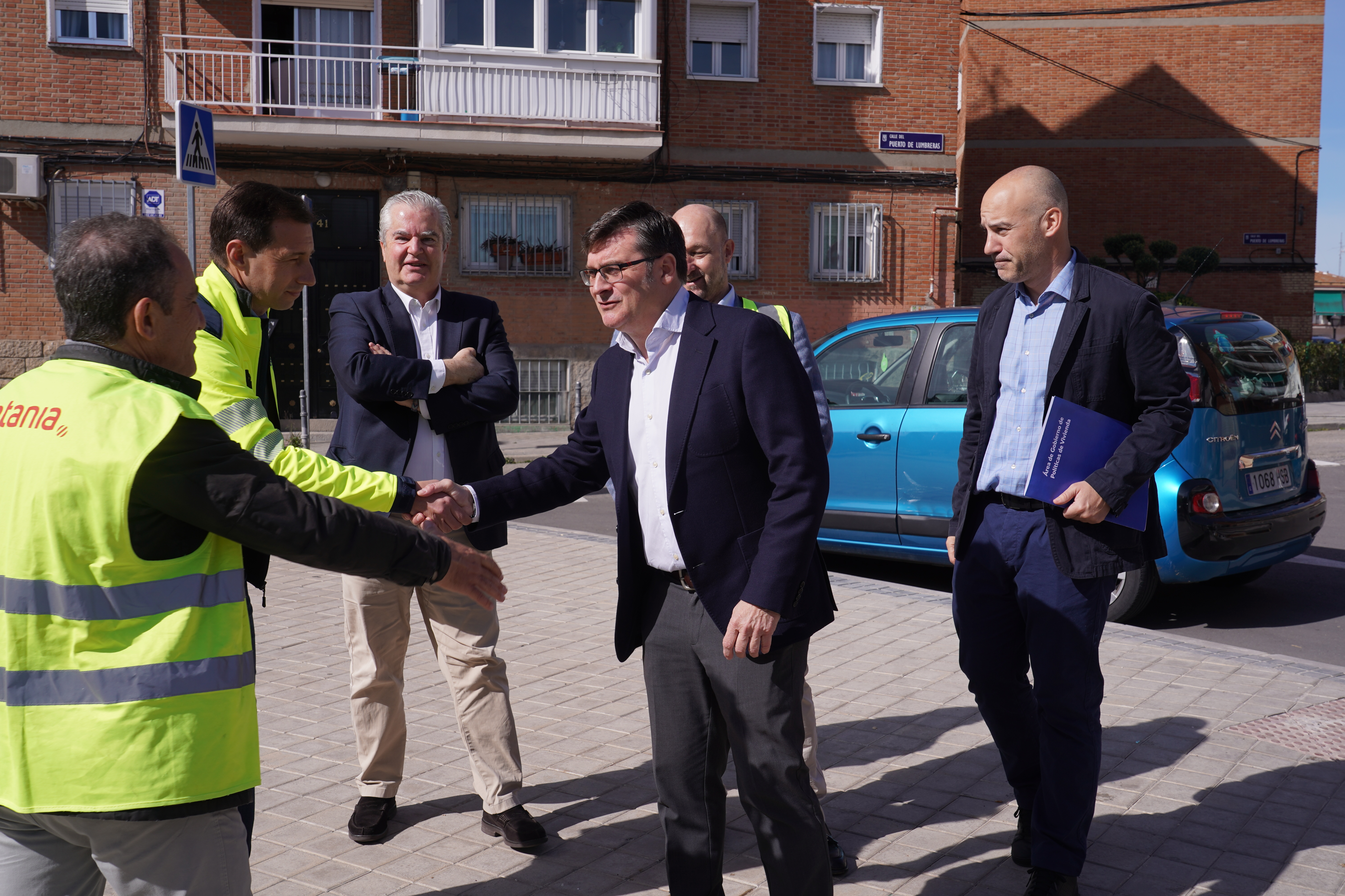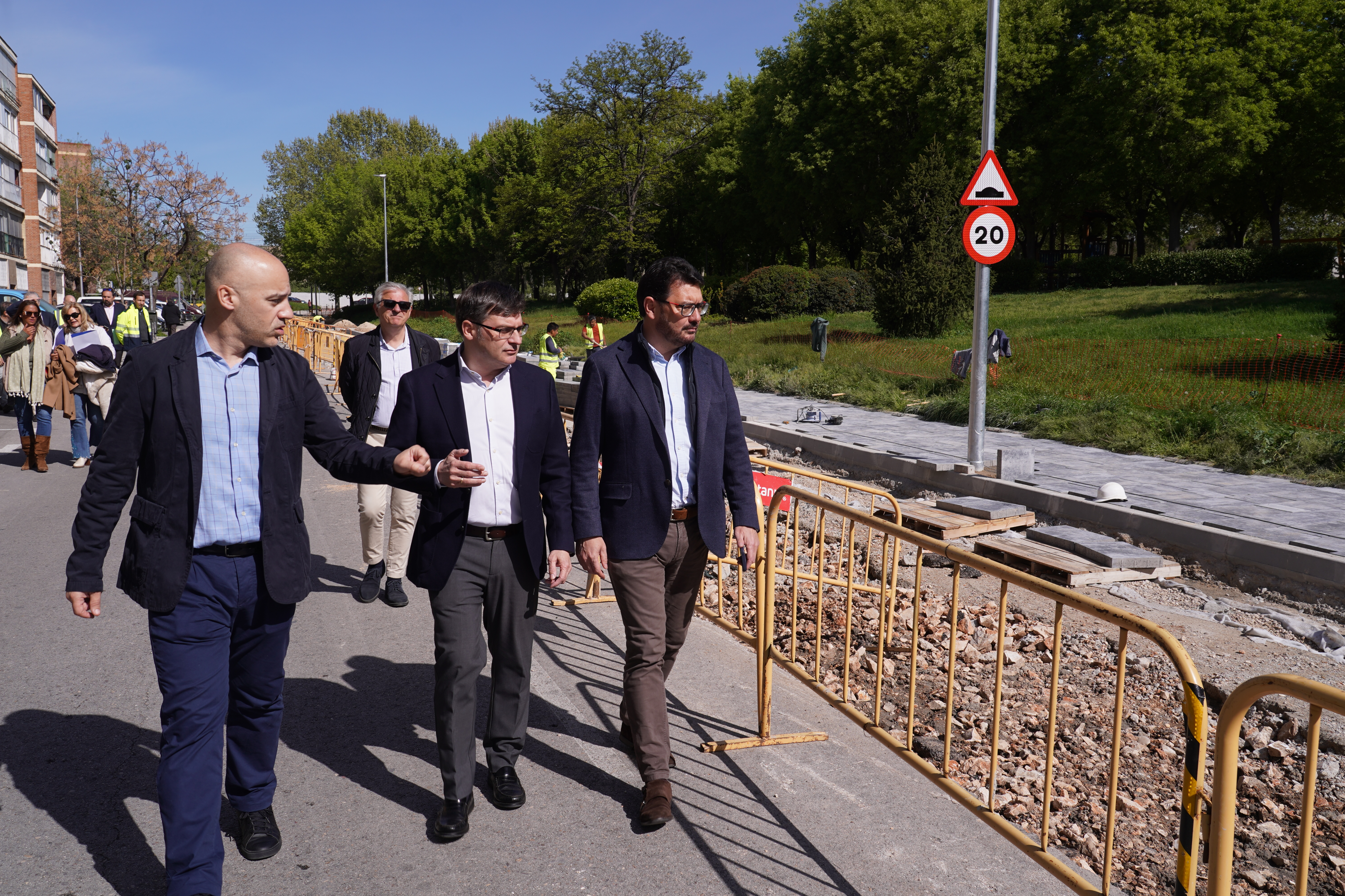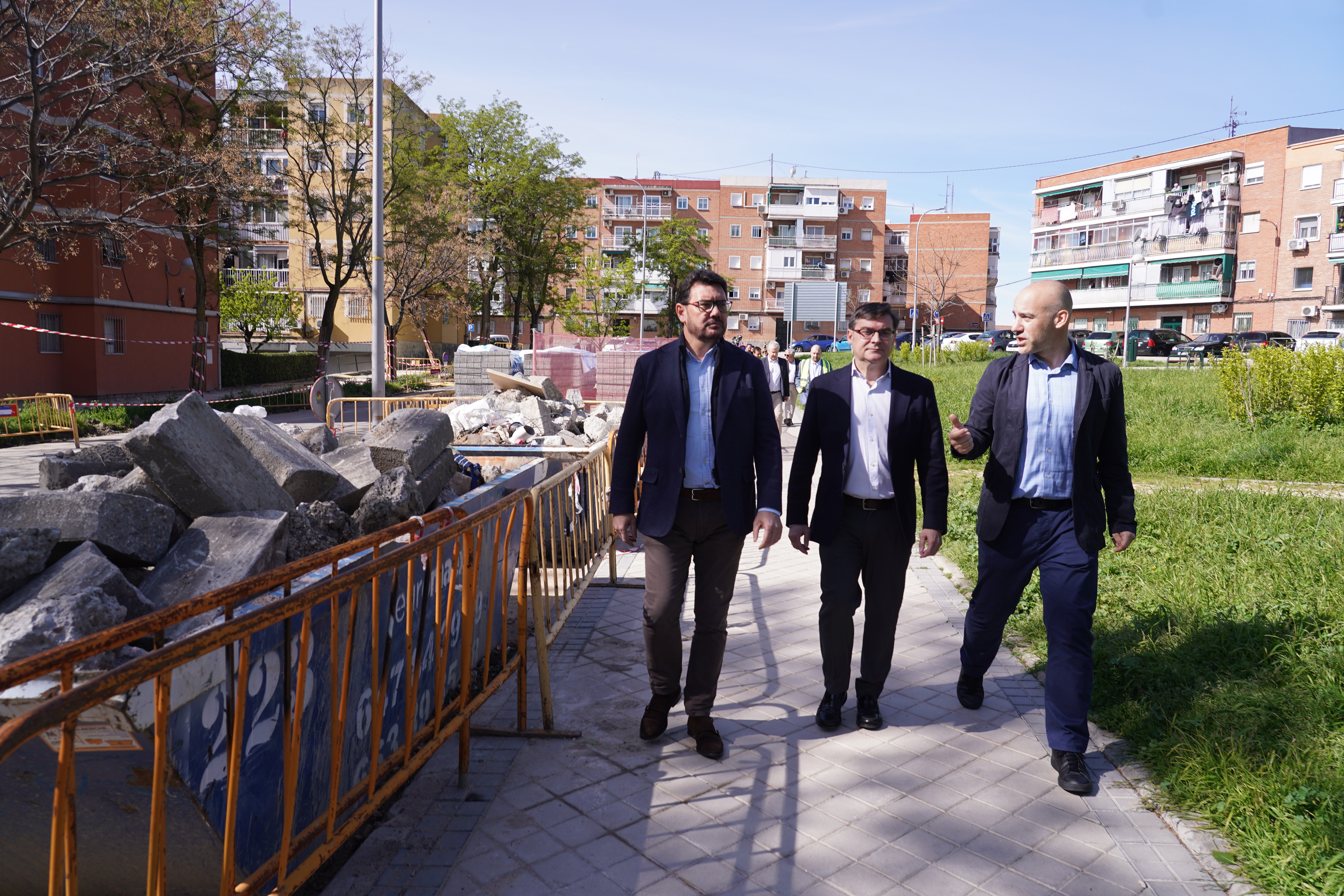 El delegado de Políticas de Vivienda y presidente de la Empresa Municipal de la Vivienda y Suelo (EMVS Madrid), Álvaro González, acompañado del concejal de Villa de Vallecas, Carlos González, ha visitado esta mañana las obras de regeneración urbana que, a través del Plan Regenera Madrid, se están llevando a cabo en el distrito.