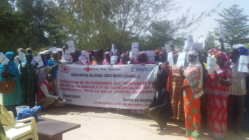 Se formó a 210 personas en técnicas de producción y comercialización ganaderas y comercio a pequeña escala, y 690 familias recibieron transferencias en efectivo por un importe de 229€ para retomar la actividad económica. También se formó a 16 voluntarios de la Cruz Roja Maliense en respuesta a emergencias. La población beneficiaria directa fue de 4.140 personas.