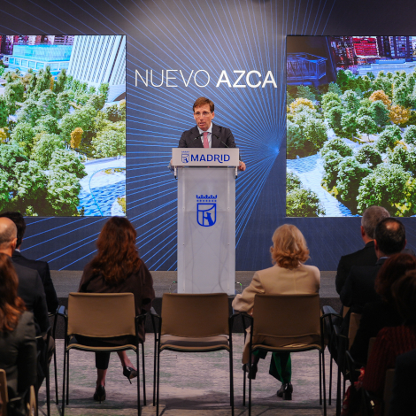Almeida incorpora a AZCA al proceso de transformación urbana que “definirá el mejor futuro de Madrid”El alcalde de Madrid, José Luis Martínez-Almeida, acompañado de la delegada de Obras y Equipamientos, Paloma García Romero, y la concejala de Tetuán, Paula Gómez-Angulo, ha presentado el proyecto básico para la remodelación de AZCA, que llega tras un acuerdo histórico entre el Ayuntamiento de Madrid y las empresas, vecinos y comercios del ámbito para poner en marcha una actuación integral, unitaria y definitiva en este espacio de referencia de la capital al que diariamente acuden unos 50.000 trabajadores, cuenta con alrededor de 2.000 vecinos y tiene un tránsito diario de aproximadamente 100.000 personas.