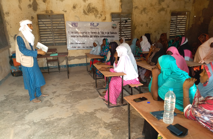 Mujeres de Niger recibiendo clase de alfabetización, a cargo de la fundación RESCATE