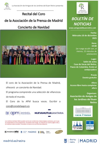• El Coro de la Asociación de la Prensa de Madrid, ofrecerá un concierto de Navidad con una selección de villancicos de todo el mundo.