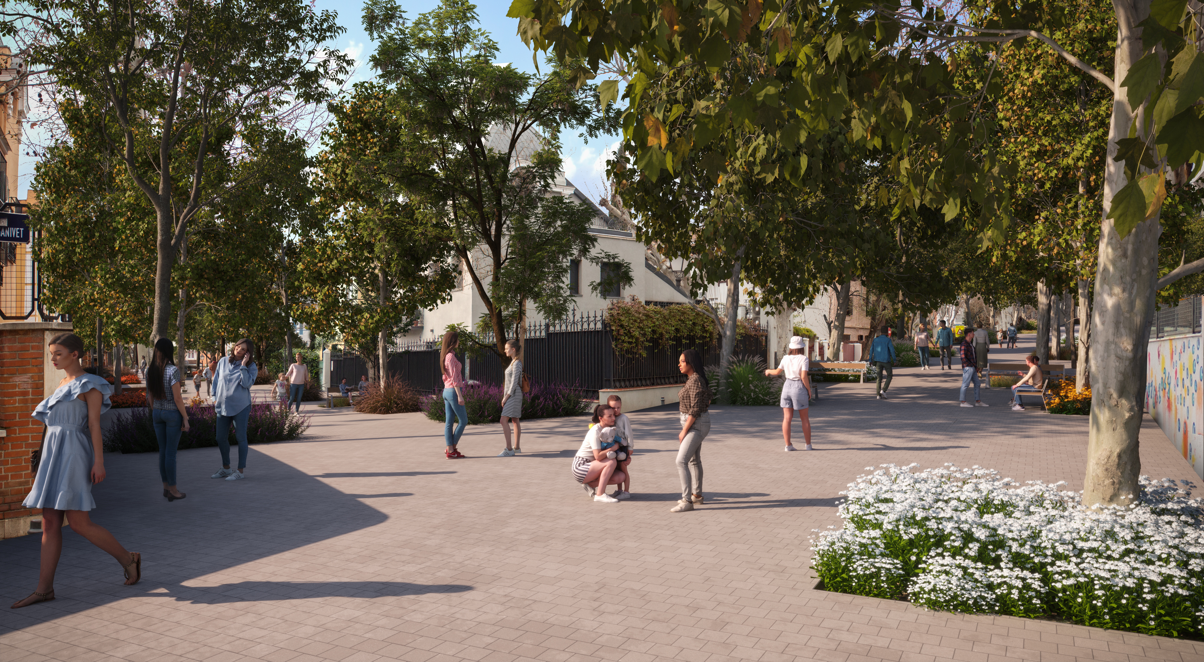 - Se implantará plataforma única para mejorar la accesibilidad peatonal y se naturalizará el ámbito, plantando 22 nuevos árboles para generar un espacio de mayor calidad ambiental