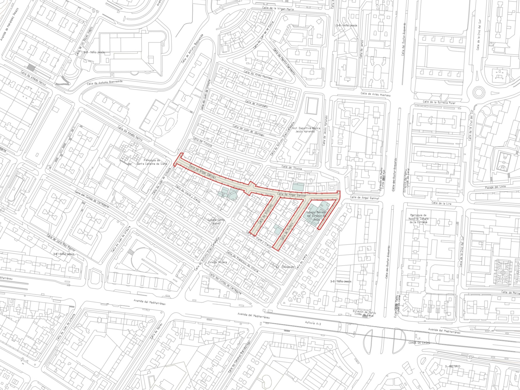 Este proyecto contempla, por un lado, la implantación de una sección de plataforma única que mejore la accesibilidad peatonal y, por otro, la naturalización del ámbito para generar un espacio de mayor calidad ambiental. Para ello, se renovará todo el pavimento existente mediante adoquines que potenciarán el carácter peatonal de estas calles. Además, se ampliarán los alcorques, delimitando un ancho estricto de 3,5 m para el paso de vehículos de emergencia o con destino a garajes.