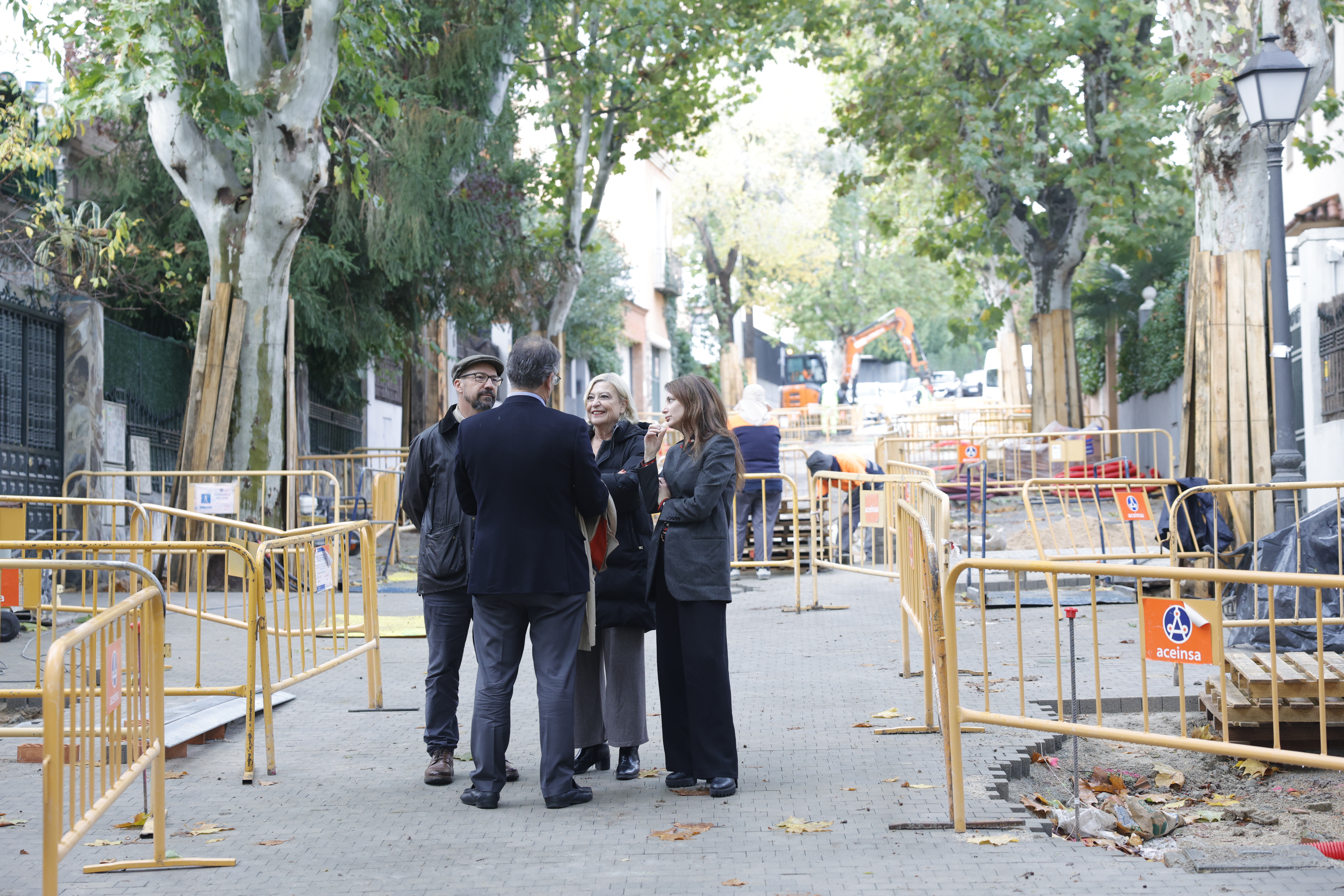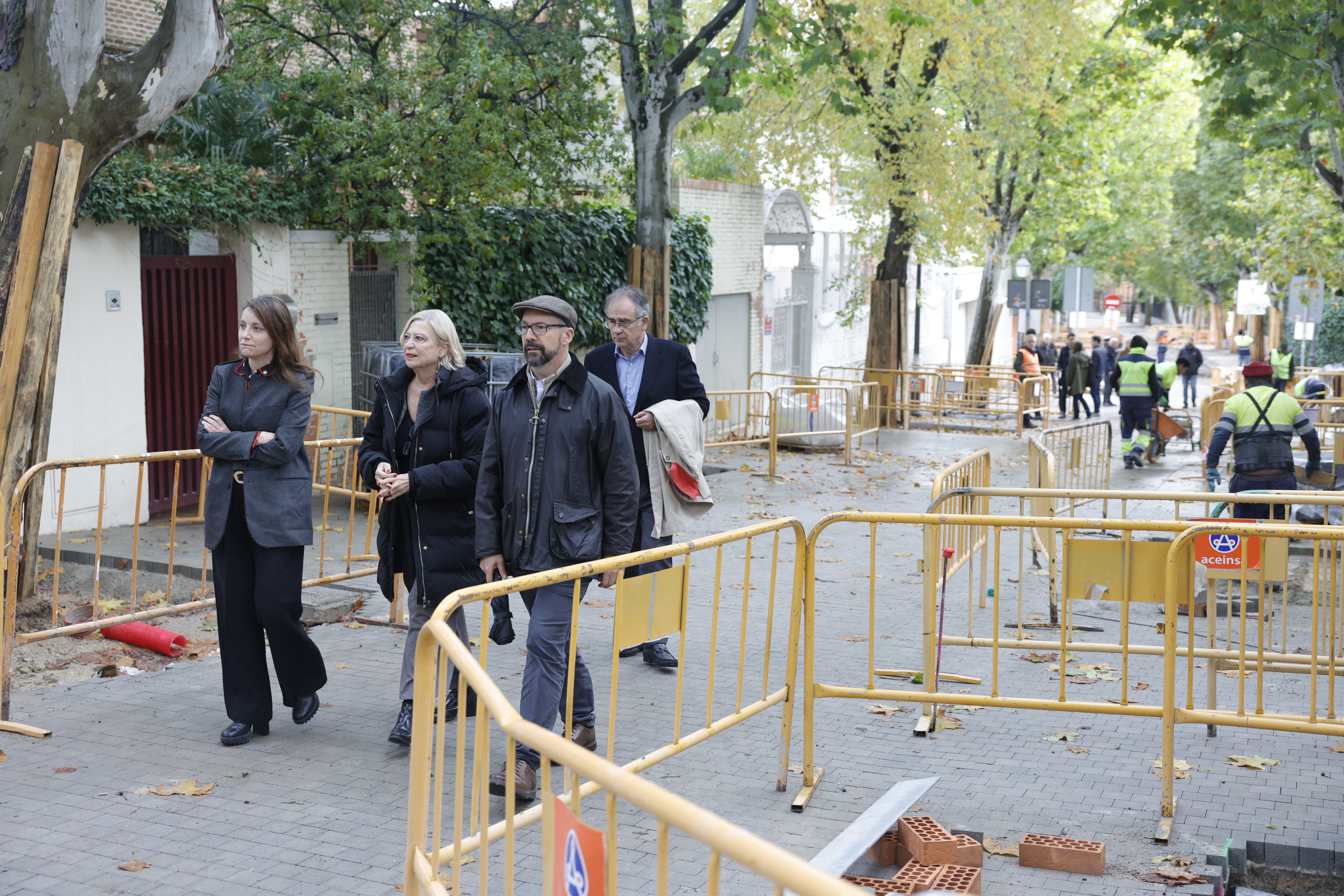 La delegada de Obras y Equipamientos, Paloma García Romero, acompañada de la concejala de Retiro, Andrea Levy, ha visitado esta mañana los trabajos de consolidación de la peatonalización que el Ayuntamiento de Madrid está ejecutando en las calles Ángel Ganivet, Averroes y Homero. La intervención, que supone una inversión de 751.000 euros y abarca una superficie de 4.300 m2, se extenderá hasta la primavera de 2026.