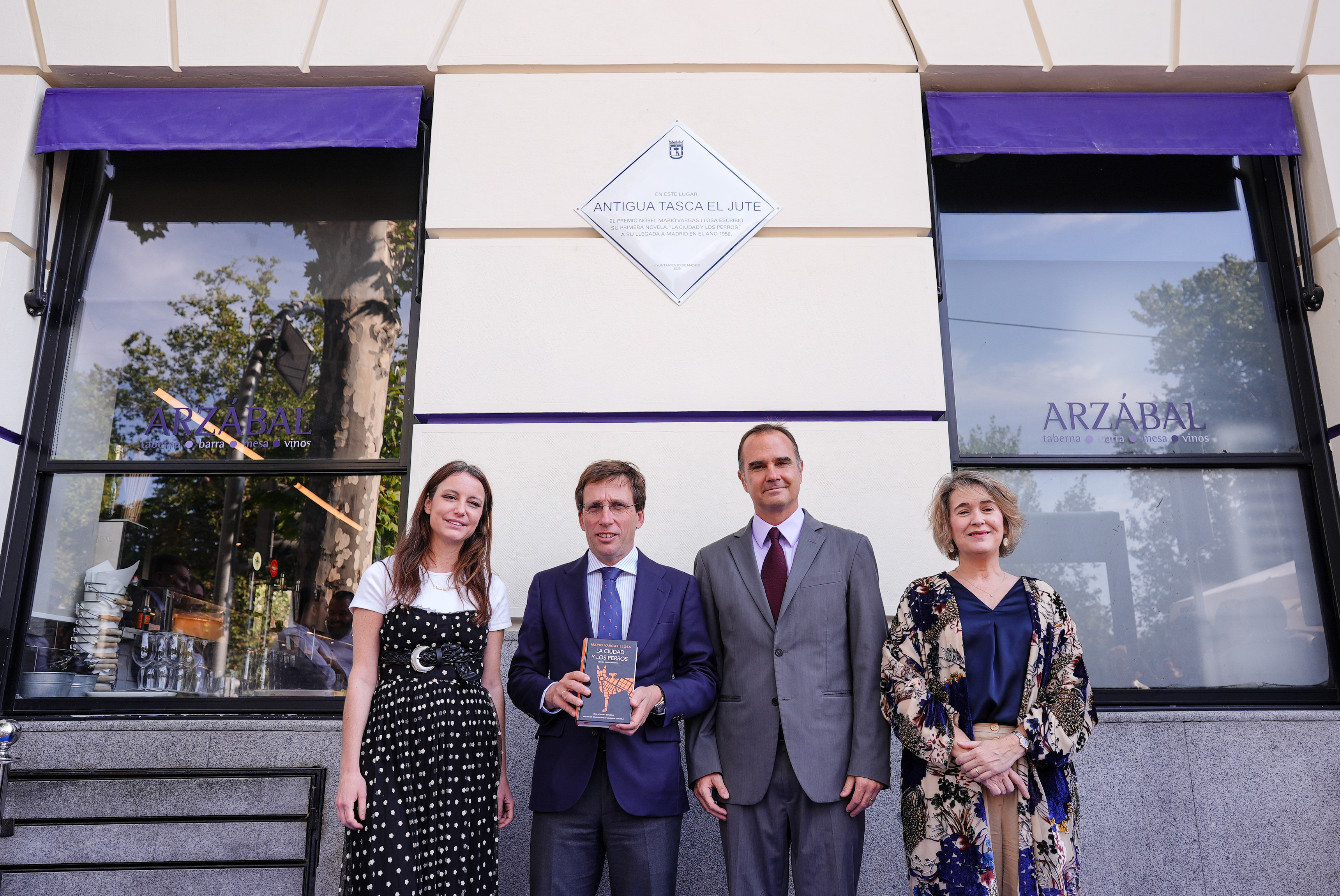 El Ayuntamiento de Madrid ha instalado una placa conmemorativa en el edificio ubicado en la avenida de Menéndez Pelayo, 13, en el distrito de Retiro, para recordar el lugar en el que el escritor Mario Vargas Llosa escribió La ciudad y los perros, su primera novela, en 1958. En ese emplazamiento, se encontraba la tasca El Jute, donde el Premio Nobel de Literatura acudió a diario durante año y medio para redactar gran parte de la obra.
