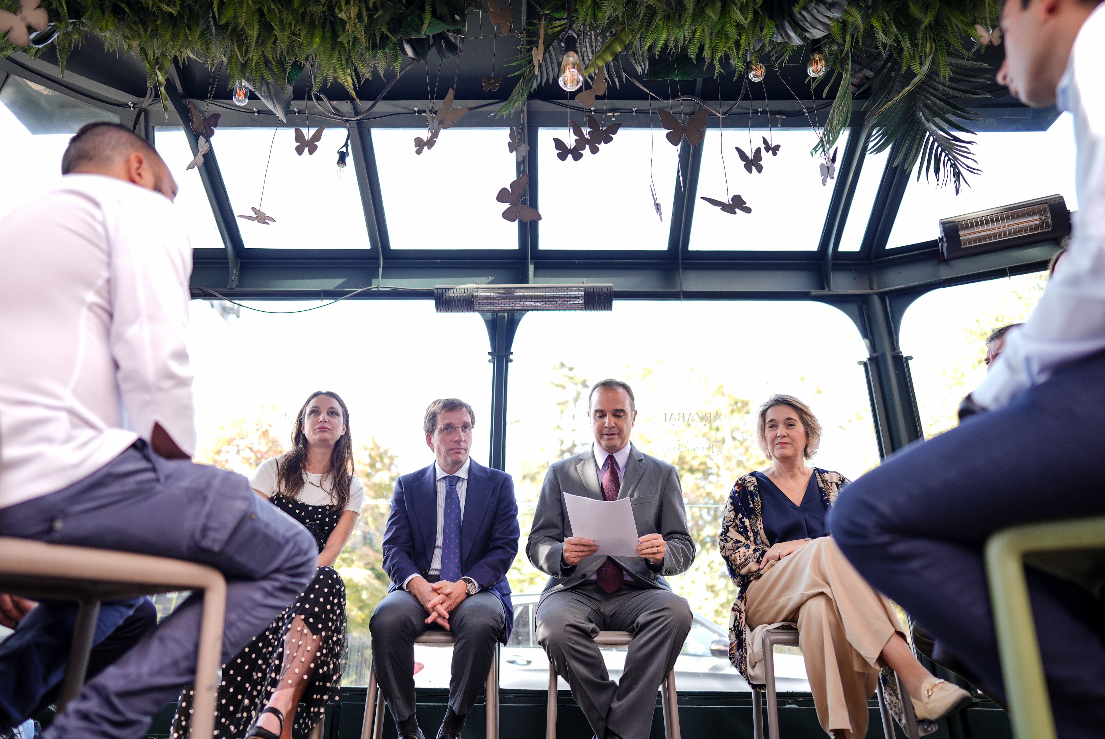 El alcalde de Madrid, José Luis Martínez-Almeida, junto a la delegada de Cultura, Turismo y Deporte, Marta Rivera de Cruz, y la concejala de Retiro, Andrea Levy, ha participado este jueves en el acto de reconocimiento, fruto de un acuerdo que el Pleno de Retiro aprobó por unanimidad para honrar la memoria de Vargas Llosa en el momento en que era un escritor anónimo, recién llegado a Madrid. Por su parte, el director de la Cátedra Mario Vargas Llosa, Raúl Tola, ha leído un pasaje del libro que está escribiendo y que está dedicado al Premio Nobel, Mario Vargas Llosa pasea por Madrid.