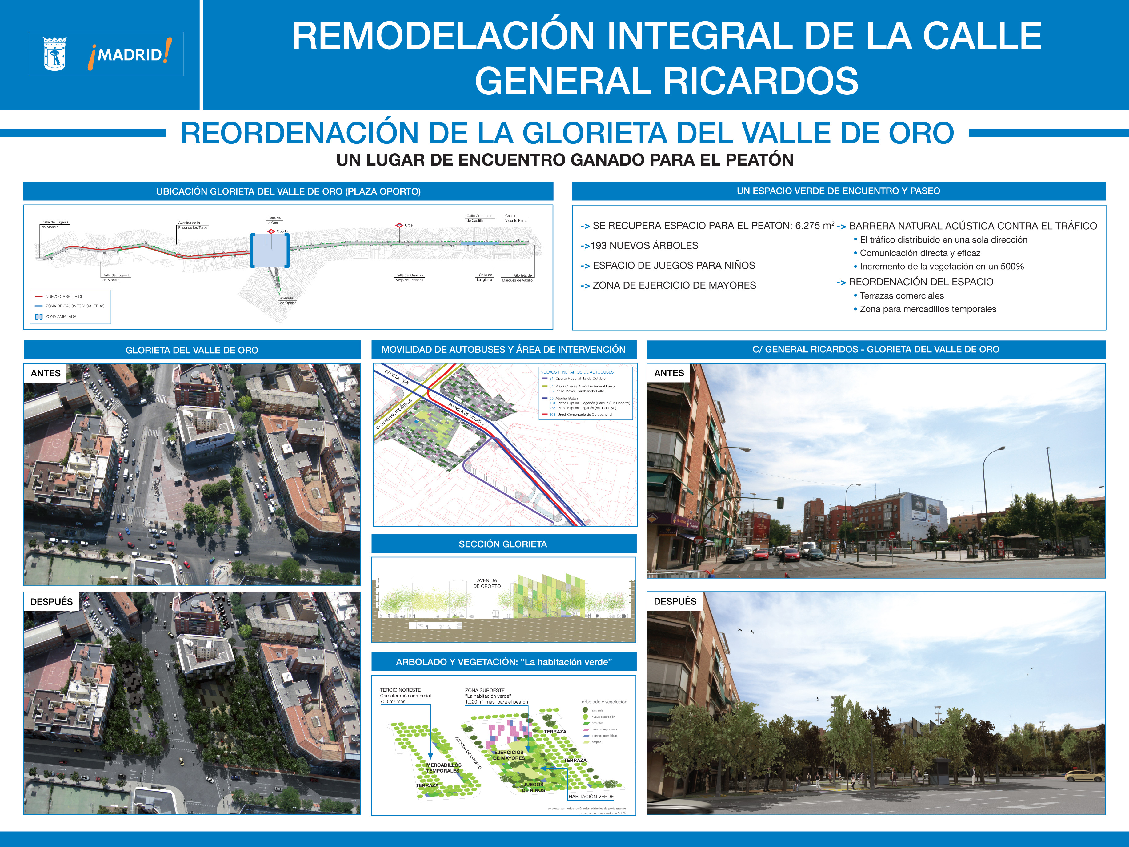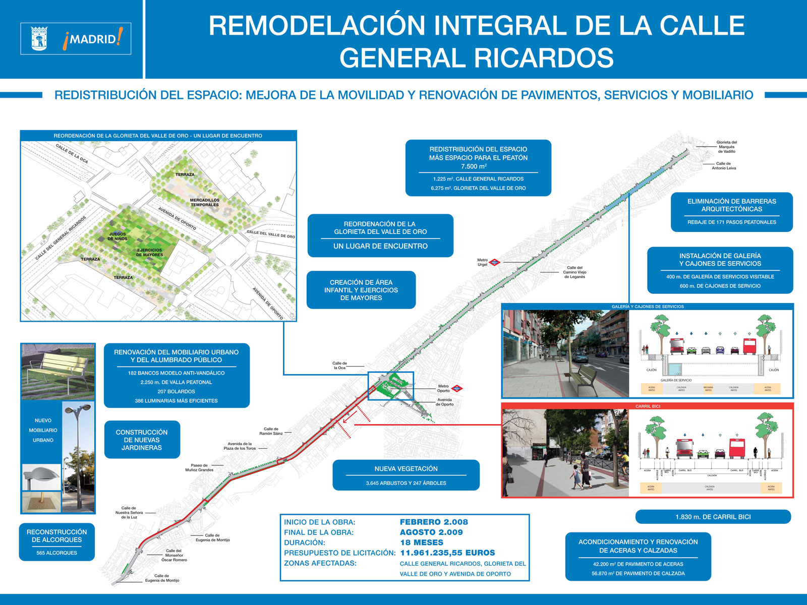 "Dentro de un año -concluyó el alcalde- General Ricardos será una calle con un aspecto y un protagonismo renovado. Será referencia de ese Madrid que se moderniza con el fin de ofrecer una mayor calidad de vida a todos sus ciudadanos con independencia del distrito donde residan, de esa ciudad más equilibrada y cohesionada gracias a sus nuevos espacios de convivencia"./