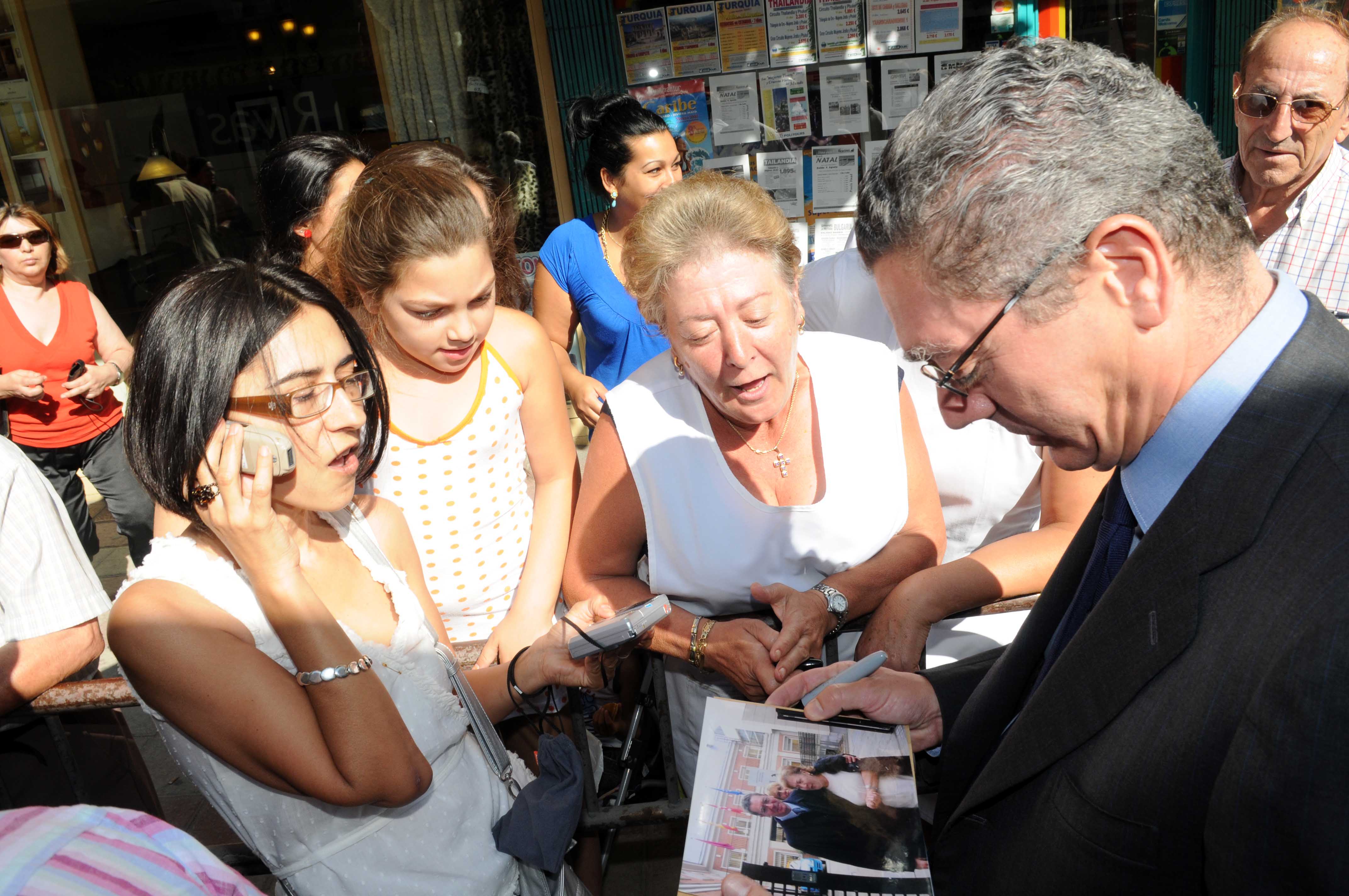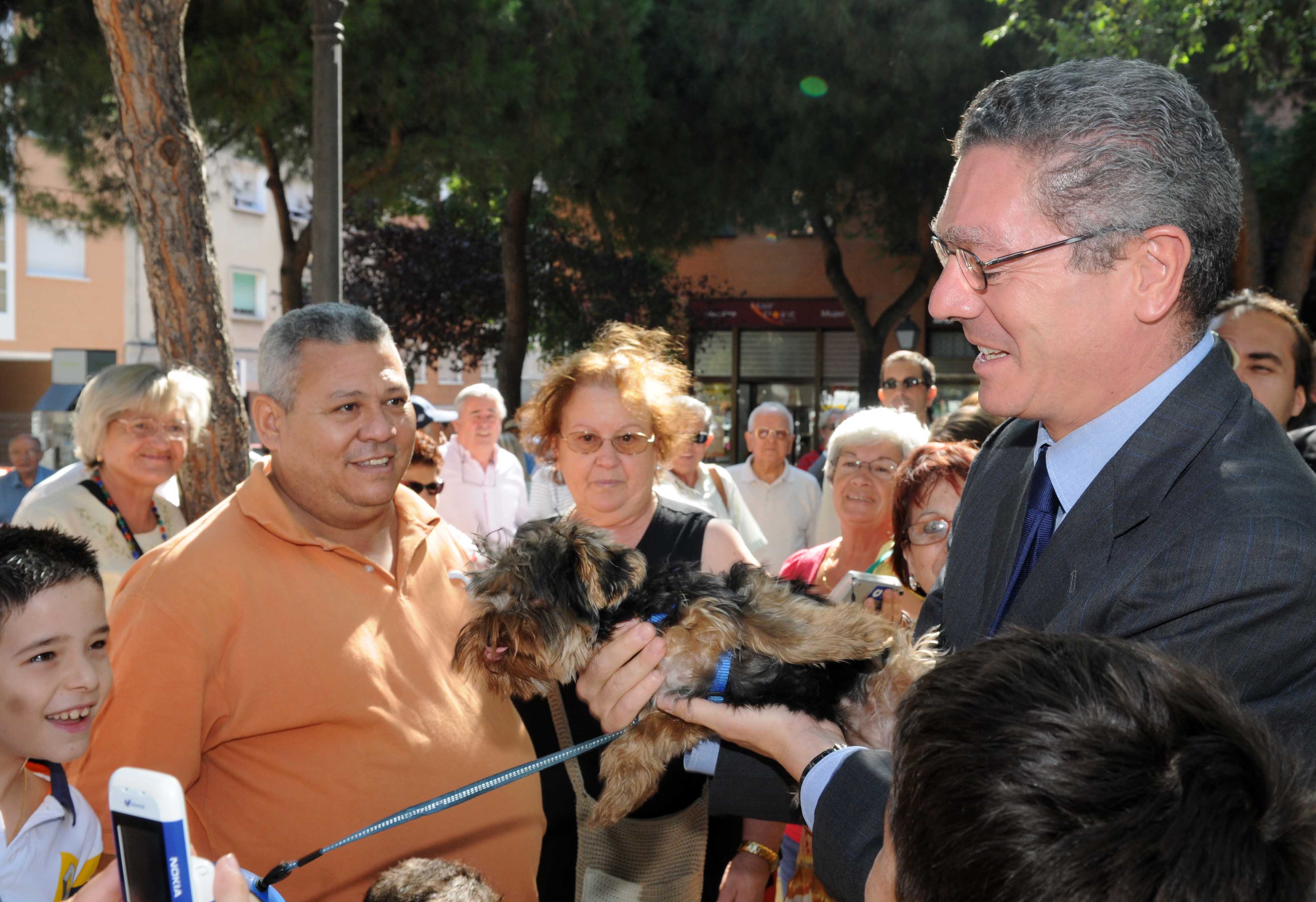 El alcalde de la Ciudad de Madrid, Alberto Ruiz-Gallardón, durante la visita de obras que ha realizado esta mañana en el distrito de Carabanchel.