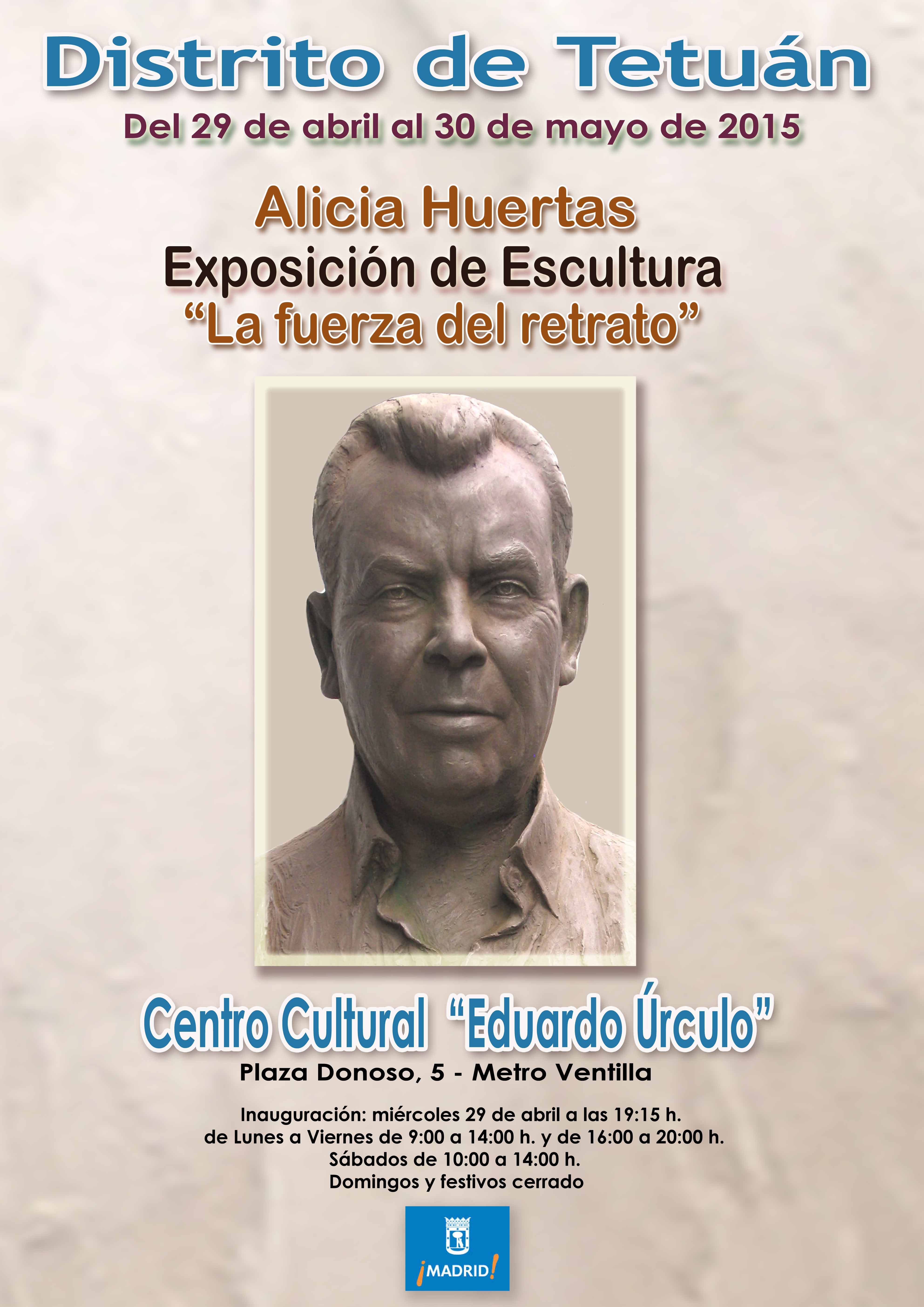 La exposición de escultura de Alicia Huertas estará abierta hasta el 30 de mayo, en el Centro Cultural ‘Eduardo Úrculo' (Plaza Donoso, 5. Metro Ventilla), con horario de 9:00 a 21:30 horas, de lunes a sábados. Los domingos y festivos cierra./