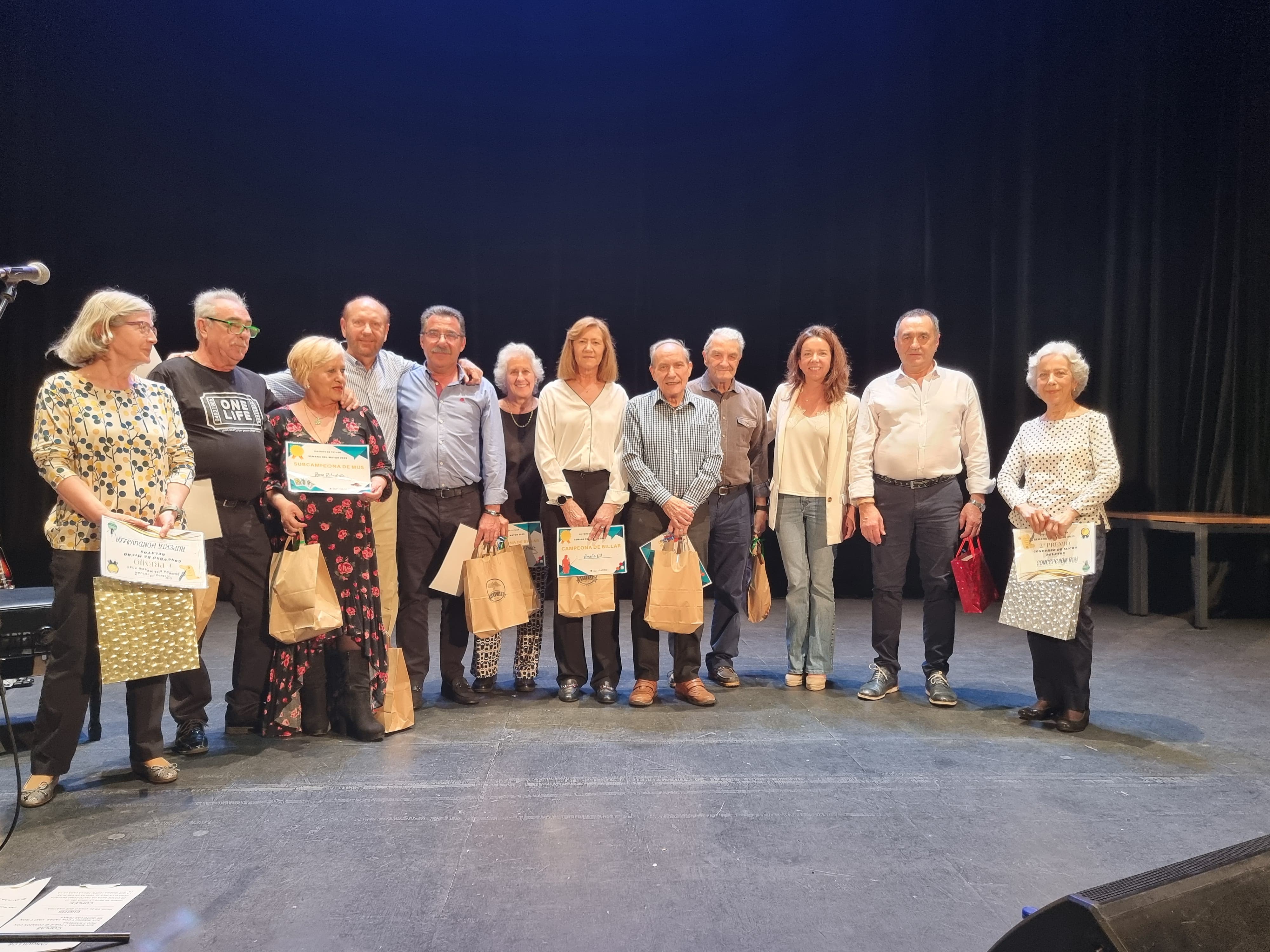 El festival de la Semana de las Personas Mayores de Tetuán ha clausurado la última jornada de este ciclo de actividades en el Centro Cultural Eduardo Úrculo. La concejala del distrito, Paula Gómez-Angulo, ha entregado los premios a los ganadores de los torneos de mus, billar femenino y masculino y microrrelatos. Además, el Eduardo Úrculo ha sido escenario del monólogo de Martín Gervasoni Ser mayor: antes y ahora y de un sorteo de cestas con alimentos de comercio justo.