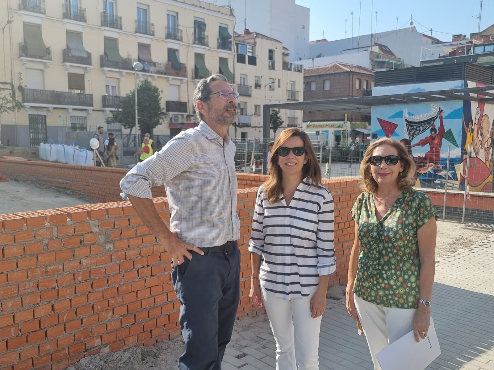 La concejala de Tetuán, Paula Gómez-Angulo, en la visita a la plaza del Poeta Leopoldo de Luis en el inicio de sus obras