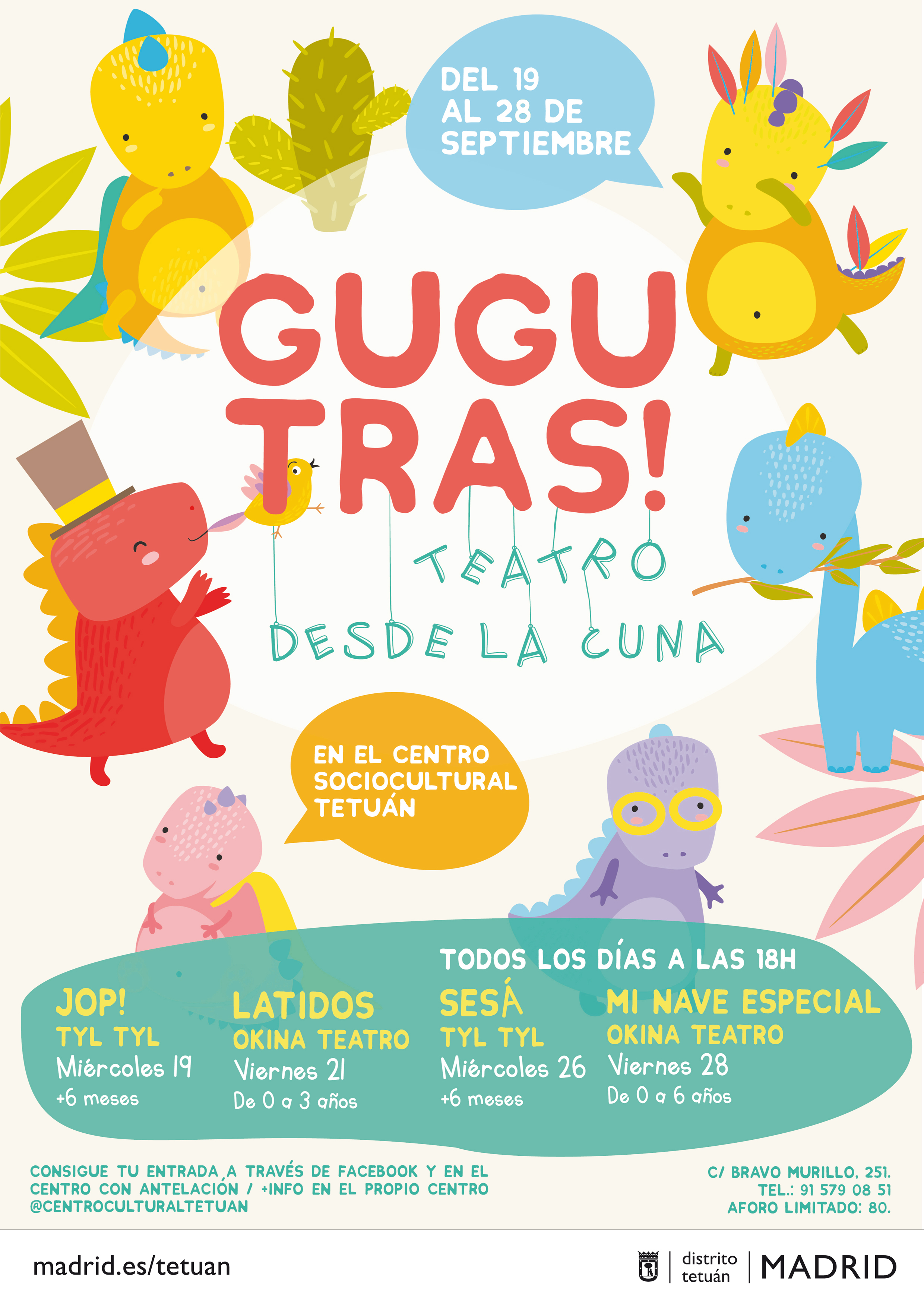 Todos los espectáculos se representan a las 18.00 horas. Las invitaciones se pueden reservar a través del Facebook del Centro Socio Cultural Tetuán -@CentroCulturalTetuan- o recogerlas presencialmente el mismo día de la representación, a partir de las 16.00 horas en el centro (c/Bravo Murillo, 251)