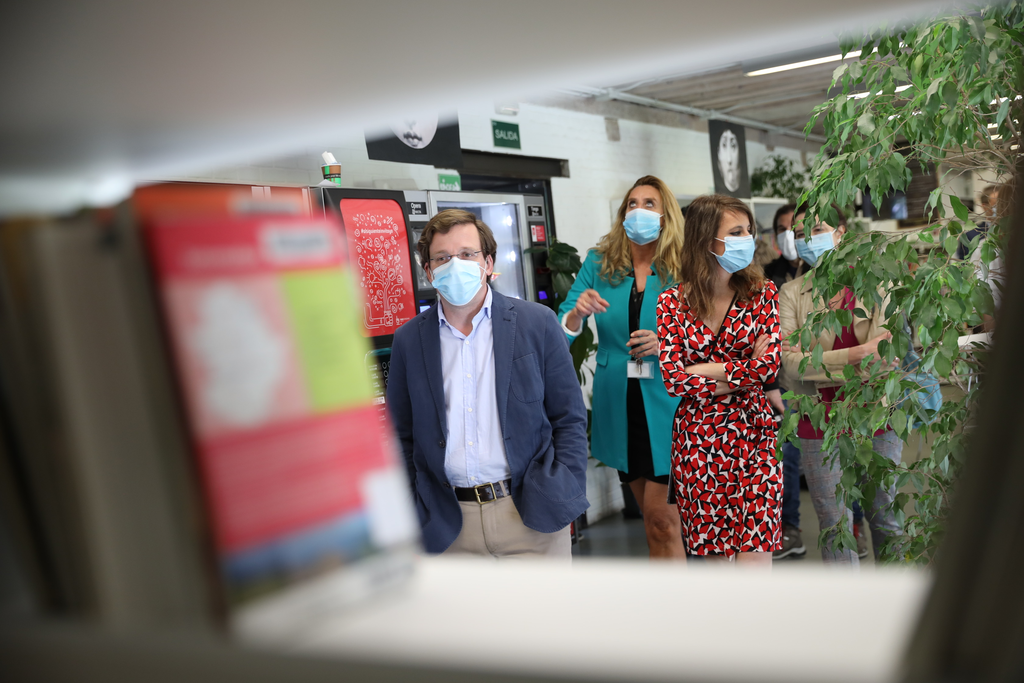 El alcalde de Madrid, José Luis Martínez-Almeida, ha visitado junto a la delegada del Área de Cultura, Turismo y Deporte, Andrea Levy, la Biblioteca Pública Municipal Eugenio Trías, ubicada en el parque de El Retiro, para conocer los protocolos de seguridad que ha instaurado con motivo de su reapertura.
