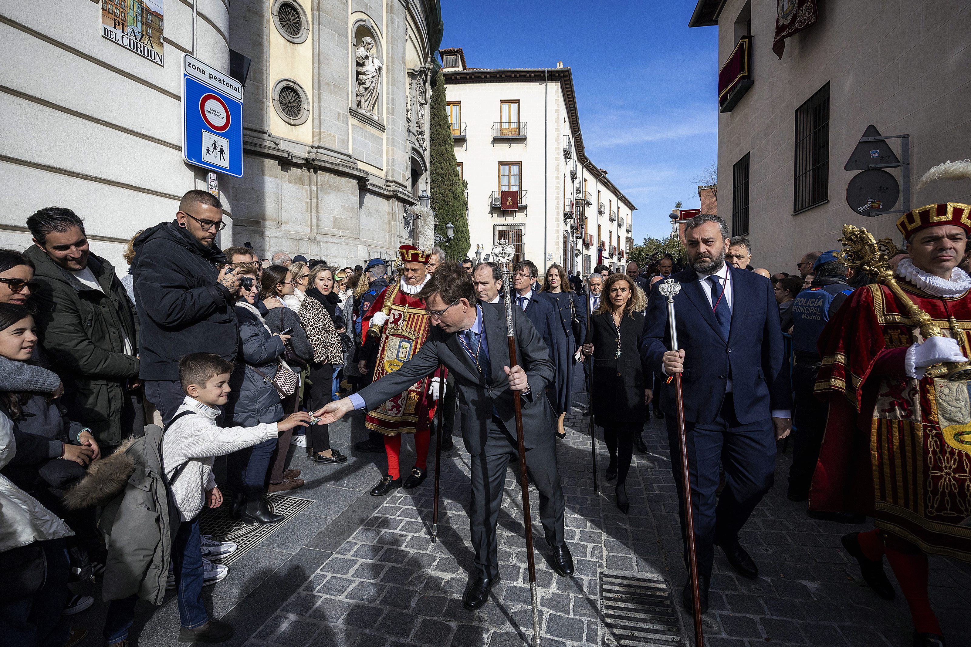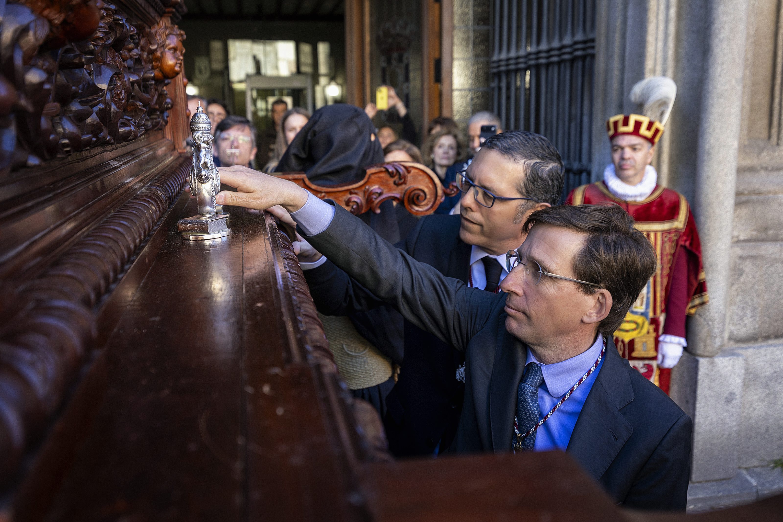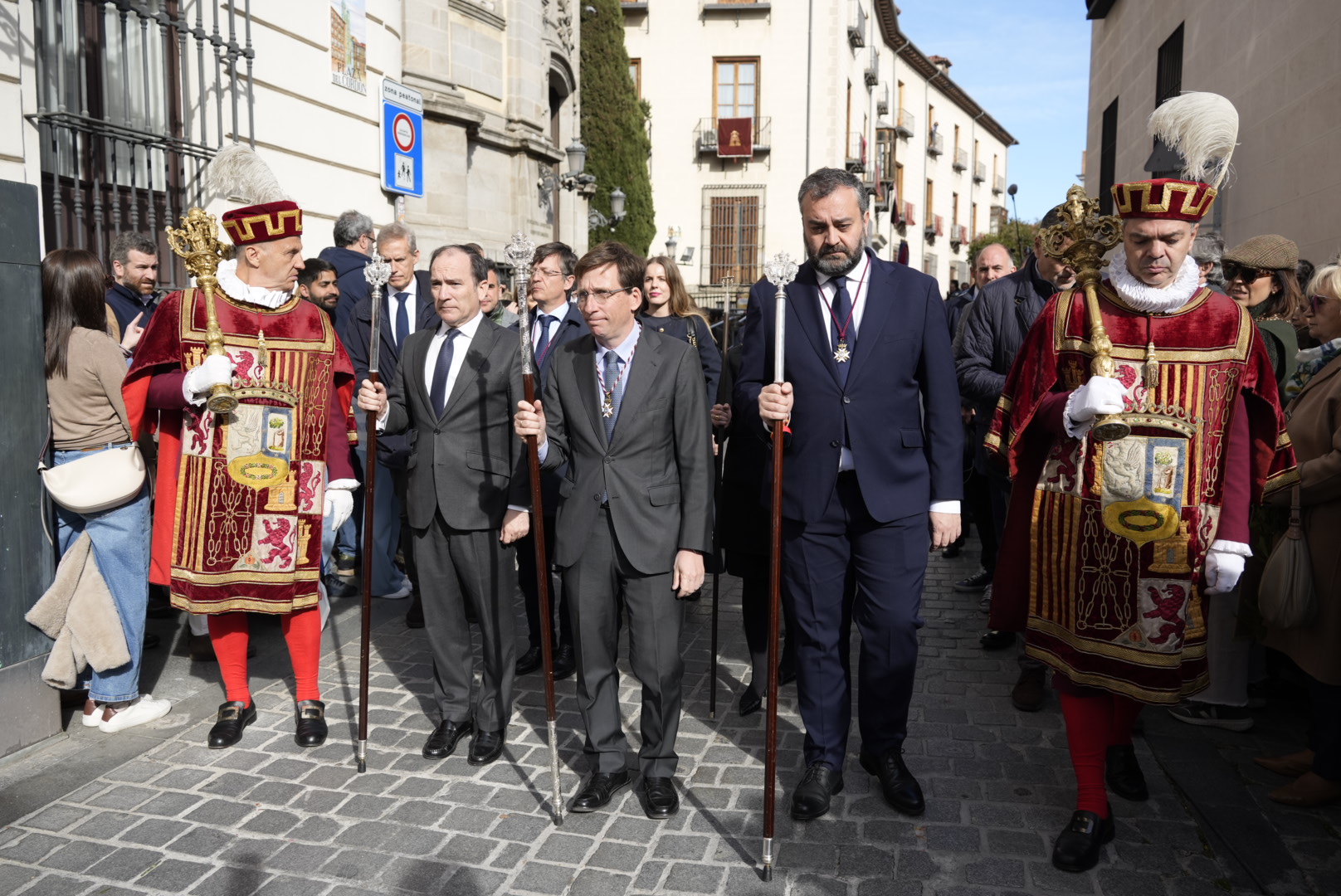 Acompañado del delegado de Urbanismo, Medio Ambiente y Movilidad, Borja Carabante; la concejala delegada de Turismo, Almudena Maíllo, y el concejal de Centro, Carlos Segura, Almeida ha participado en el cortejo procesional que ha salido de la Basílica Pontificia de San Miguel para recorrer la calle del Cordón, la plaza de la Villa, la calle Mayor, la plaza Mayor, la Puerta del Sol, la Colegiata de San Isidro y la plaza de Puerta Cerrada, entre otros emplazamientos, antes de volver al punto de partida.