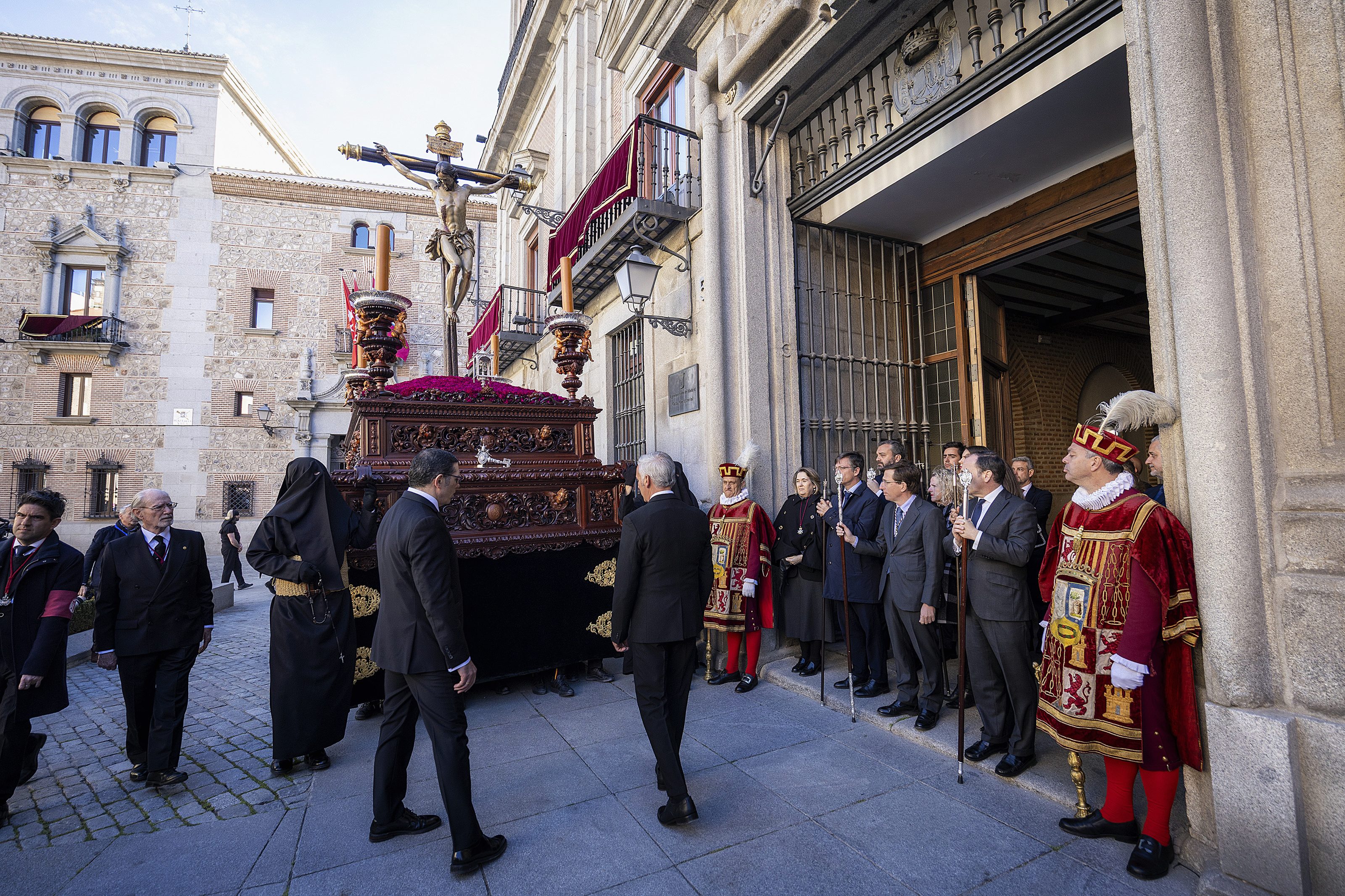 El alcalde de Madrid, José Luis Martínez-Almeida, ha asistido esta tarde a la procesión del Domingo de Ramos de la Hermandad Sacramental y Cofradía de Nazarenos del Santísimo Cristo de la Fe y del Perdón, de María Santísima Inmaculada, Madre de la Iglesia y Arcángel San Miguel, conocida como ‘Hermandad de los Estudiantes’. Esta procesión es uno de los actos destacados que abren la Semana Santa madrileña.