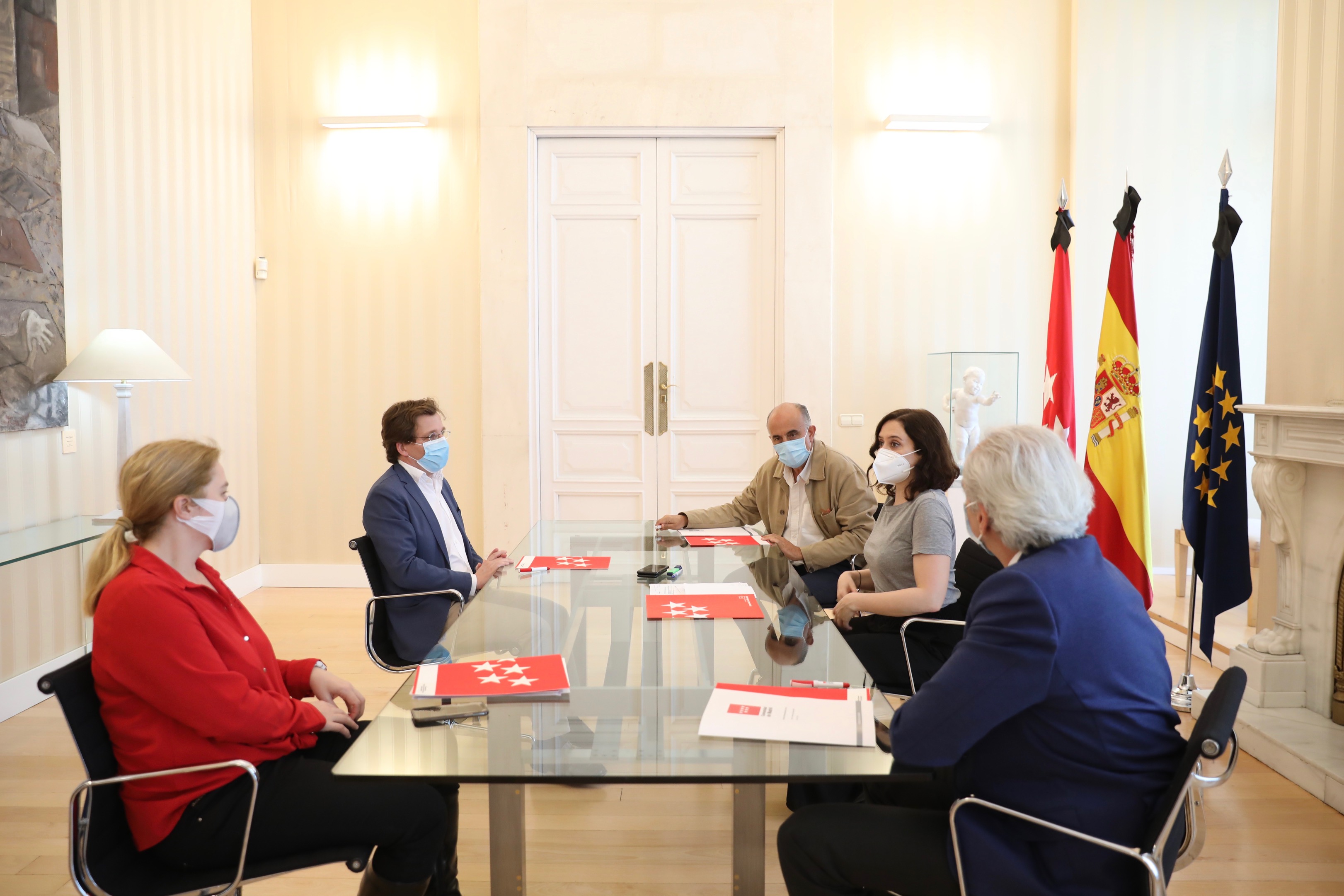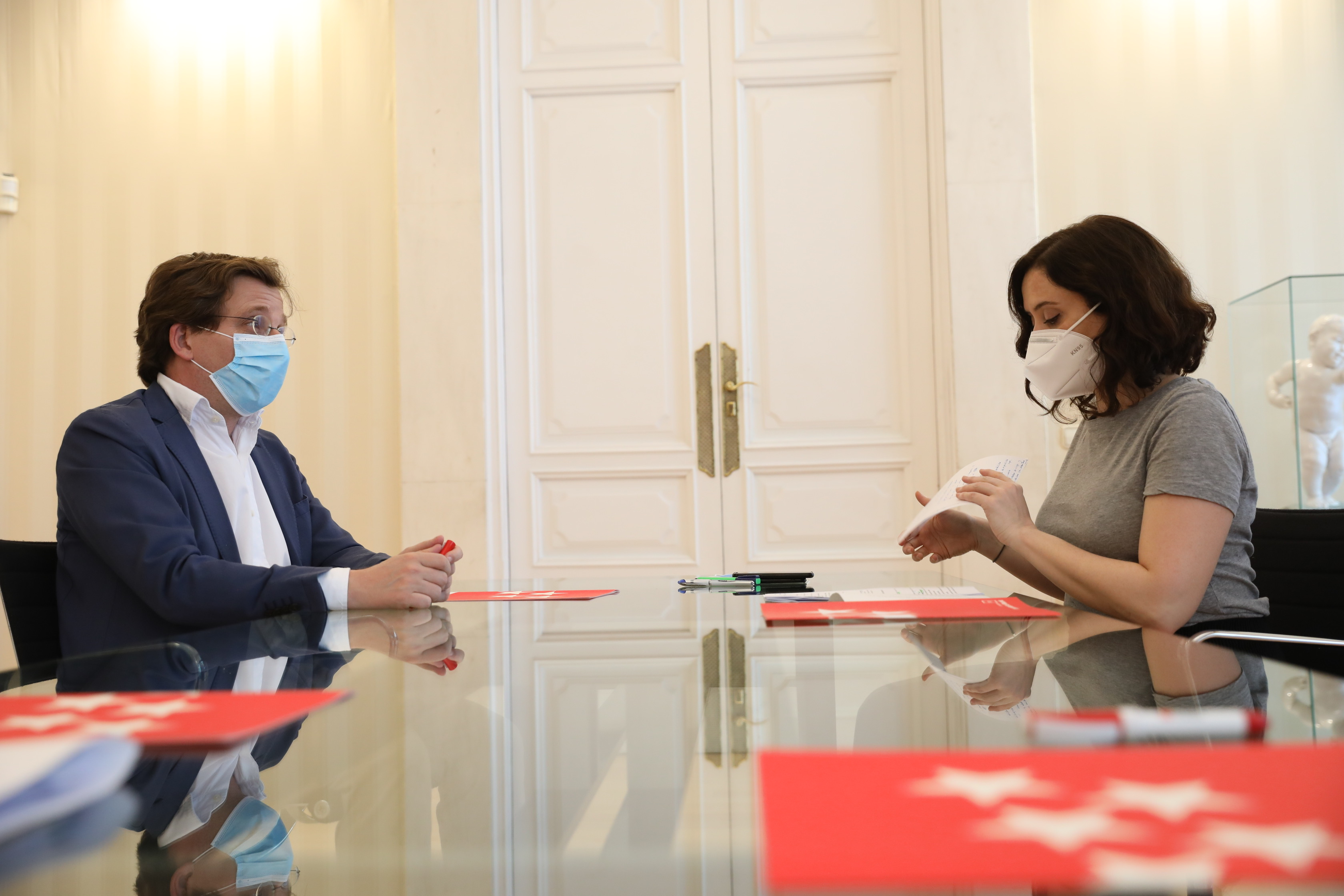El alcalde de Madrid, José Luis Martínez-Almeida, se ha reunido esta tarde con la presidenta de la Comunidad de Madrid, Isabel Díaz Ayuso, para analizar el paso de la región a la fase 1 a partir del próximo lunes en el proceso de desescalada por la COVID-19. Ambos han valorado positivamente la decisión del Gobierno de permitir a Madrid cambiar de fase y han abordado el protocolo que regulará las recomendaciones y consejos para toda la población en esta nueva etapa. En la rueda de prensa posterior a ese encuentro, celebrada de forma telemática, han coincidido en que estas medidas son para “no dar pasos en falso” y serán la base de una orden que está elaborando el Gobierno de la Comunidad y que estará lista este fin de semana. Incluirá todas las recomendaciones para los ciudadanos, que pasan por el uso de la mascarilla, mantener la distancia de seguridad y medidas de higiene.
