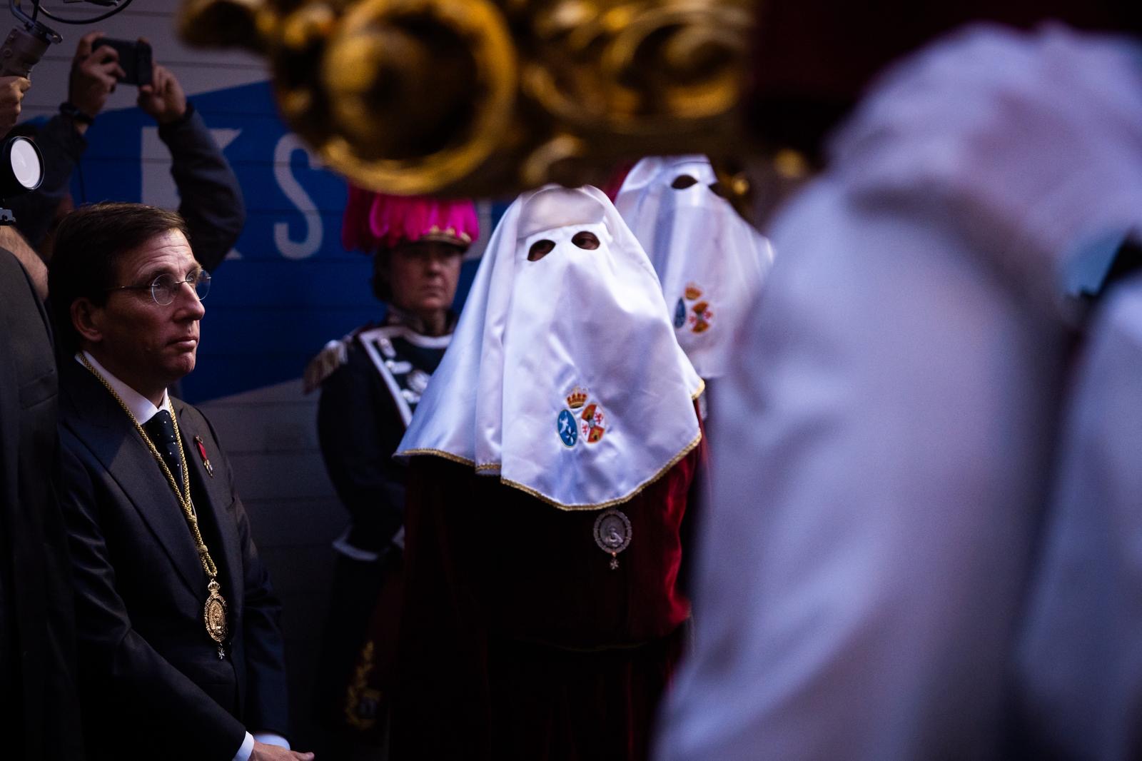 El alcalde de Madrid, José Luis Martínez-Almeida, ha acompañado hoy a la Hermandad y Cofradía de Nazarenos de Nuestro Padre Jesús de la Puente del Cedrón y María Santísima de la Paloma de Málaga en los actos organizados con motivo de su salida procesional, en el marco de la Semana Santa. Durante la jornada, Almeida ha realizado una visita institucional al Ayuntamiento de Málaga, donde ha saludado a los miembros de la cofradía y ha puesto en valor el "hermanamiento desde 1944” entre ambas ciudades, destacando los vínculos institucionales y culturales en una celebración que forma parte del patrimonio compartido.