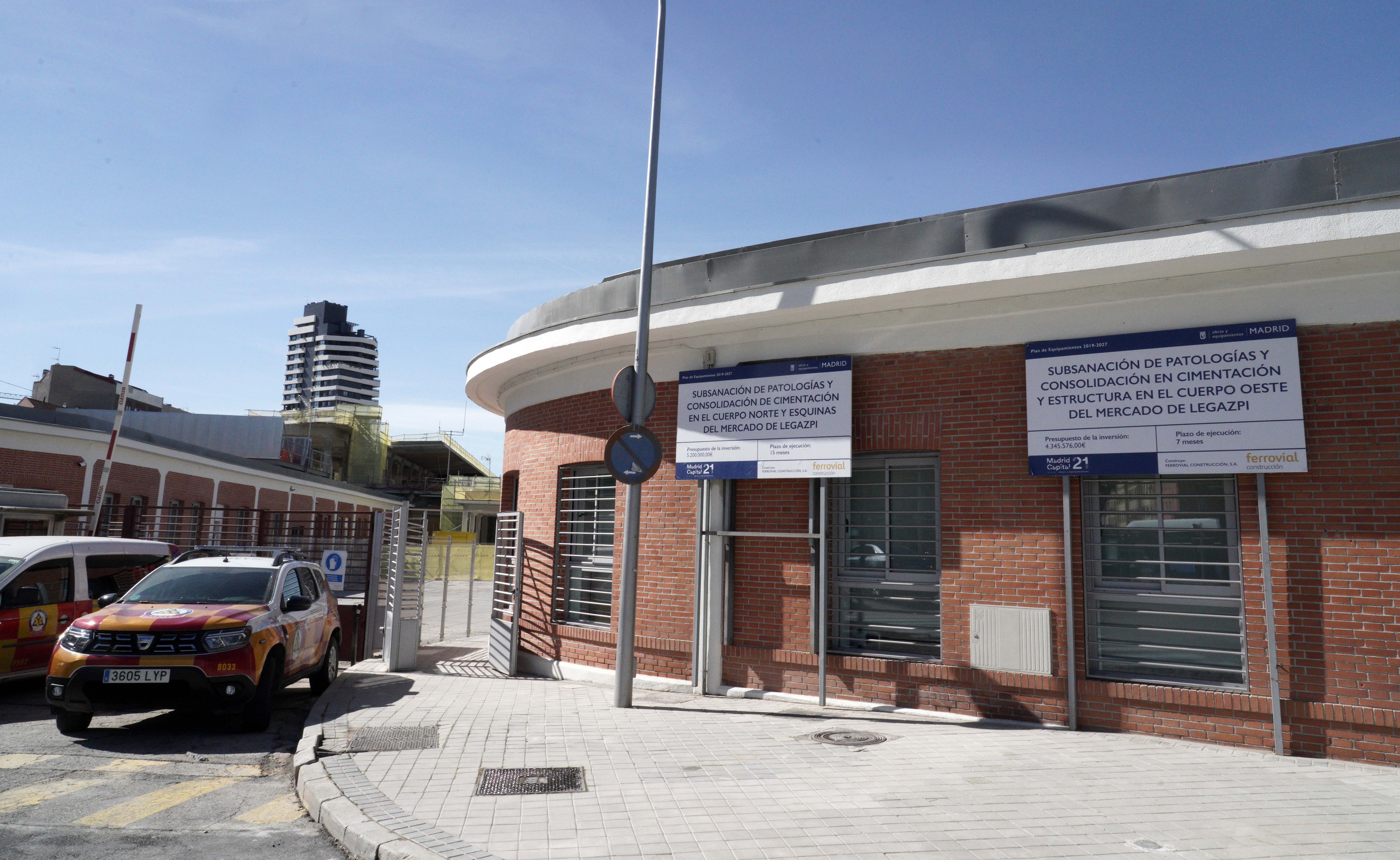 La nueva base de SAMUR-PC en el distrito de Arganzuela, ubicada en el antiguo mercado de frutas y verduras de la plaza de Legazpi, ha contado con una inversión municipal para su construcción de 3,7 millones de euros por parte del Área de Obras y Equipamientos.