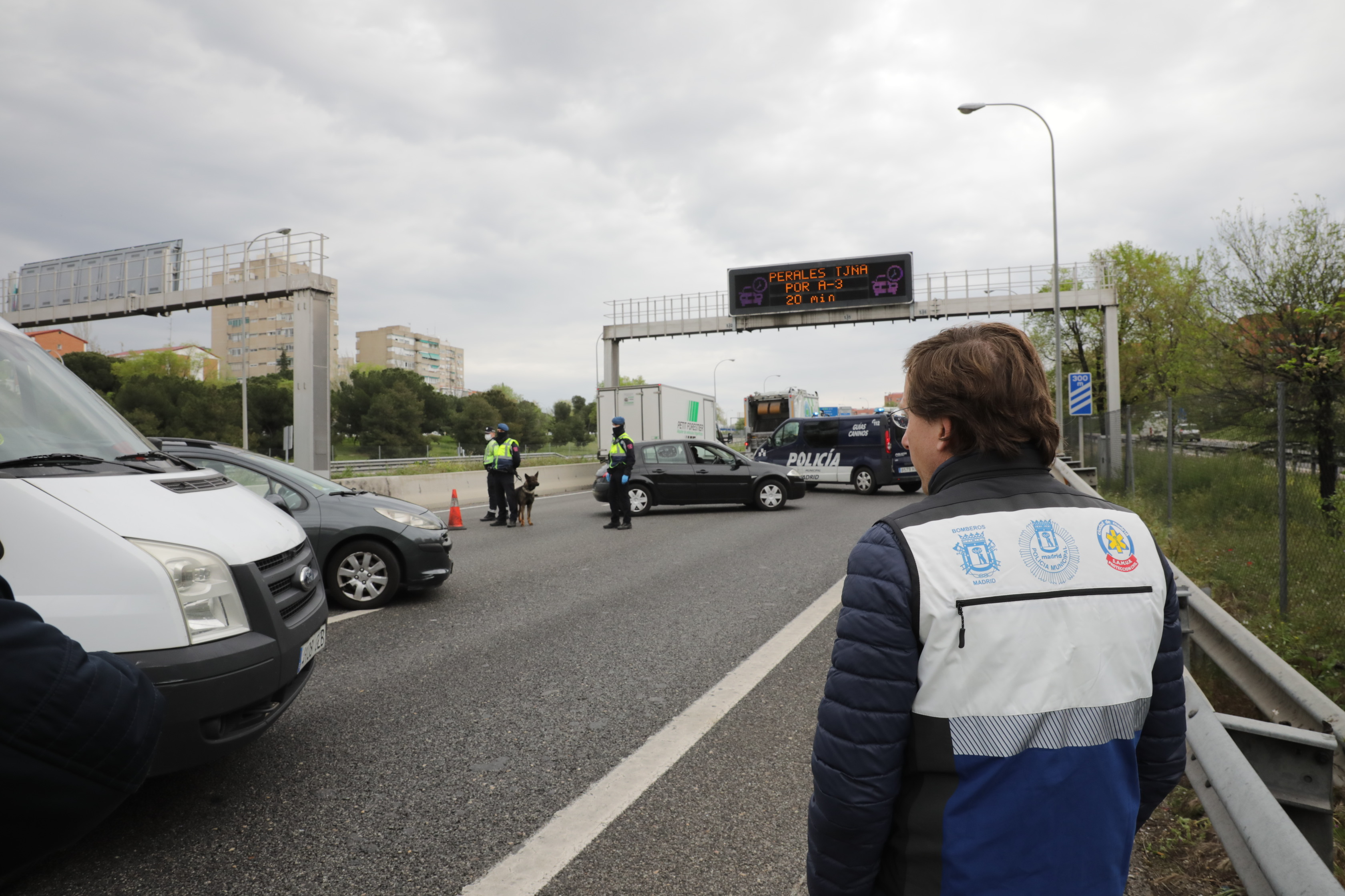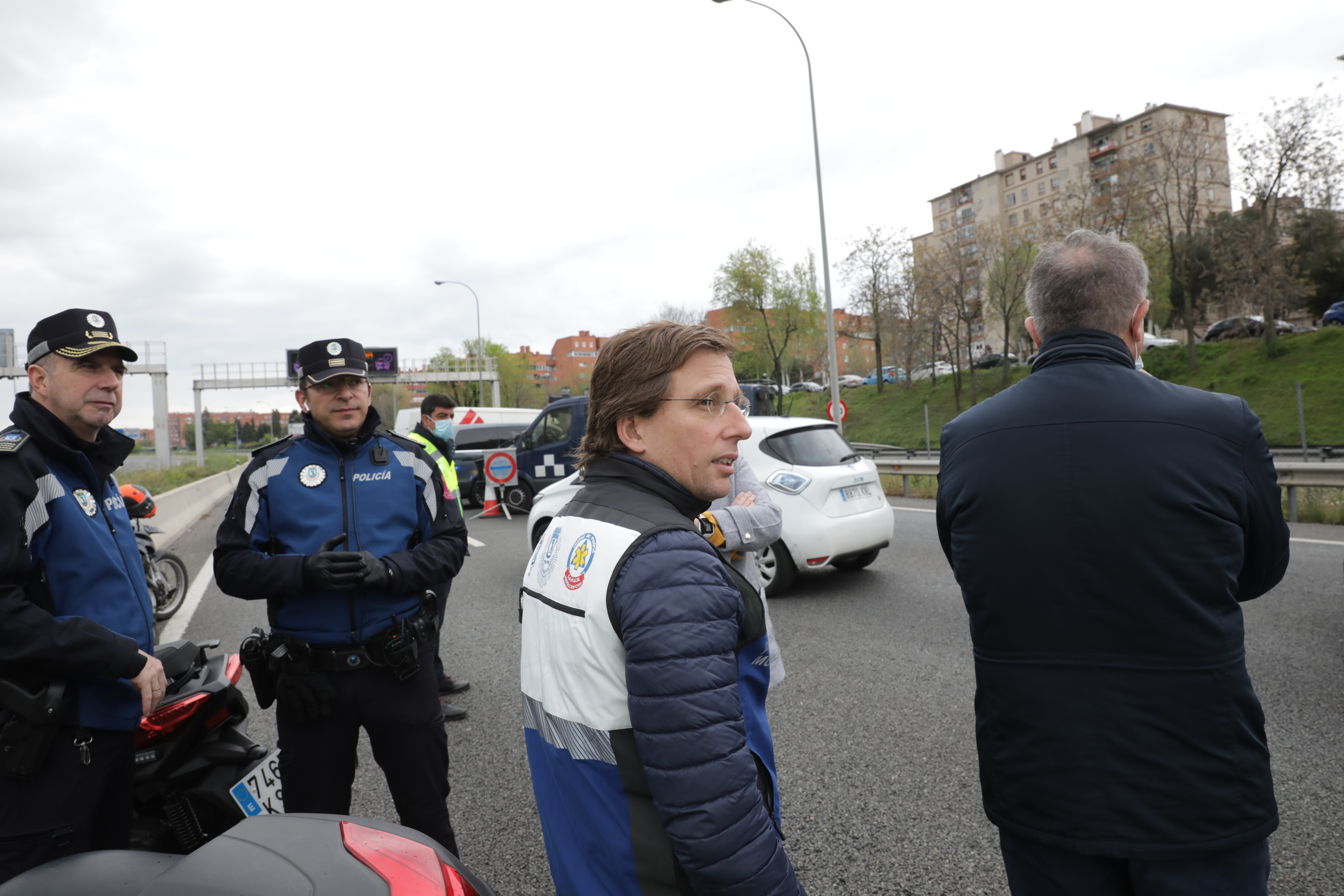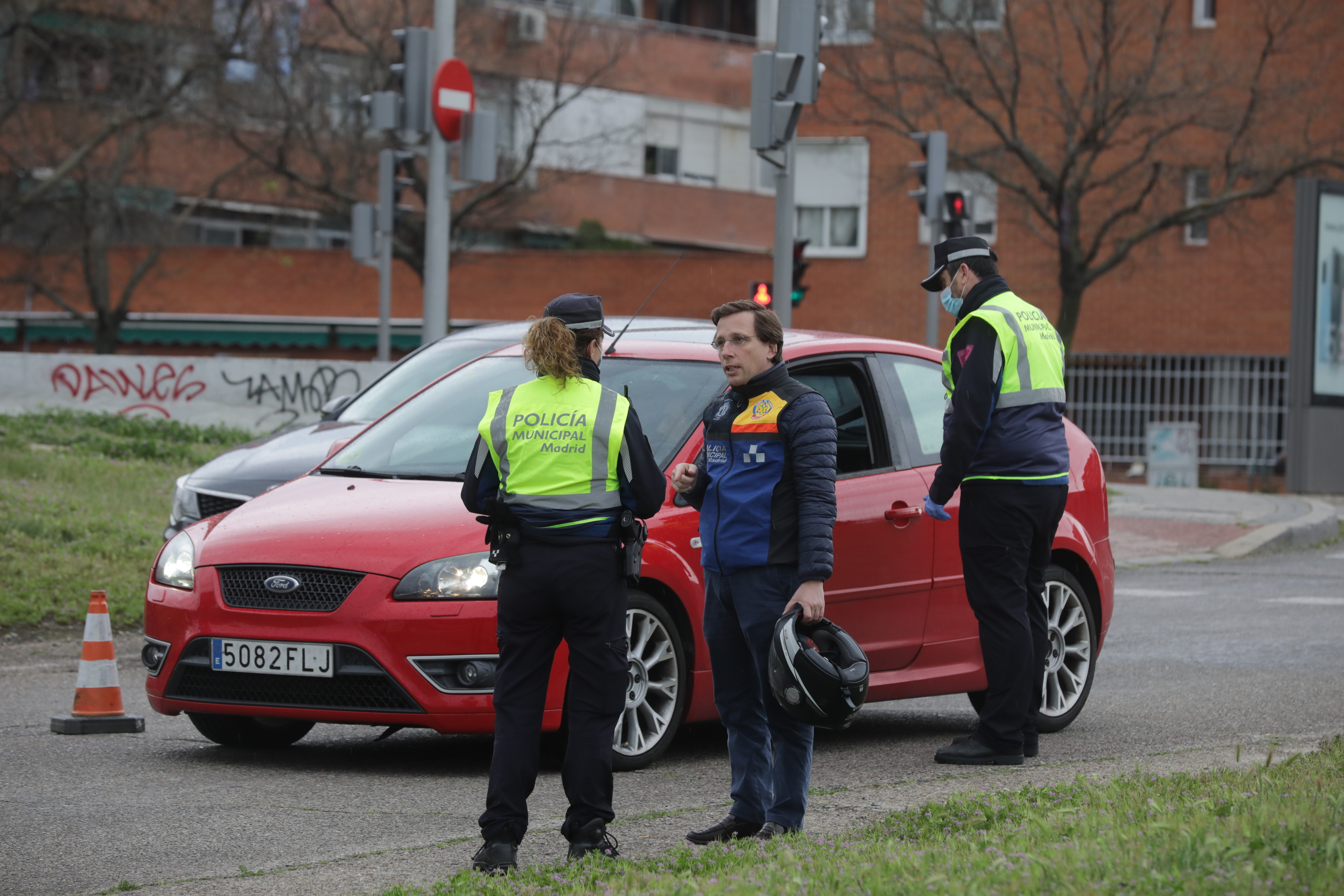 Almeida visita un control de la Policía Municipal situado en la vía de salida de Madrid A-3