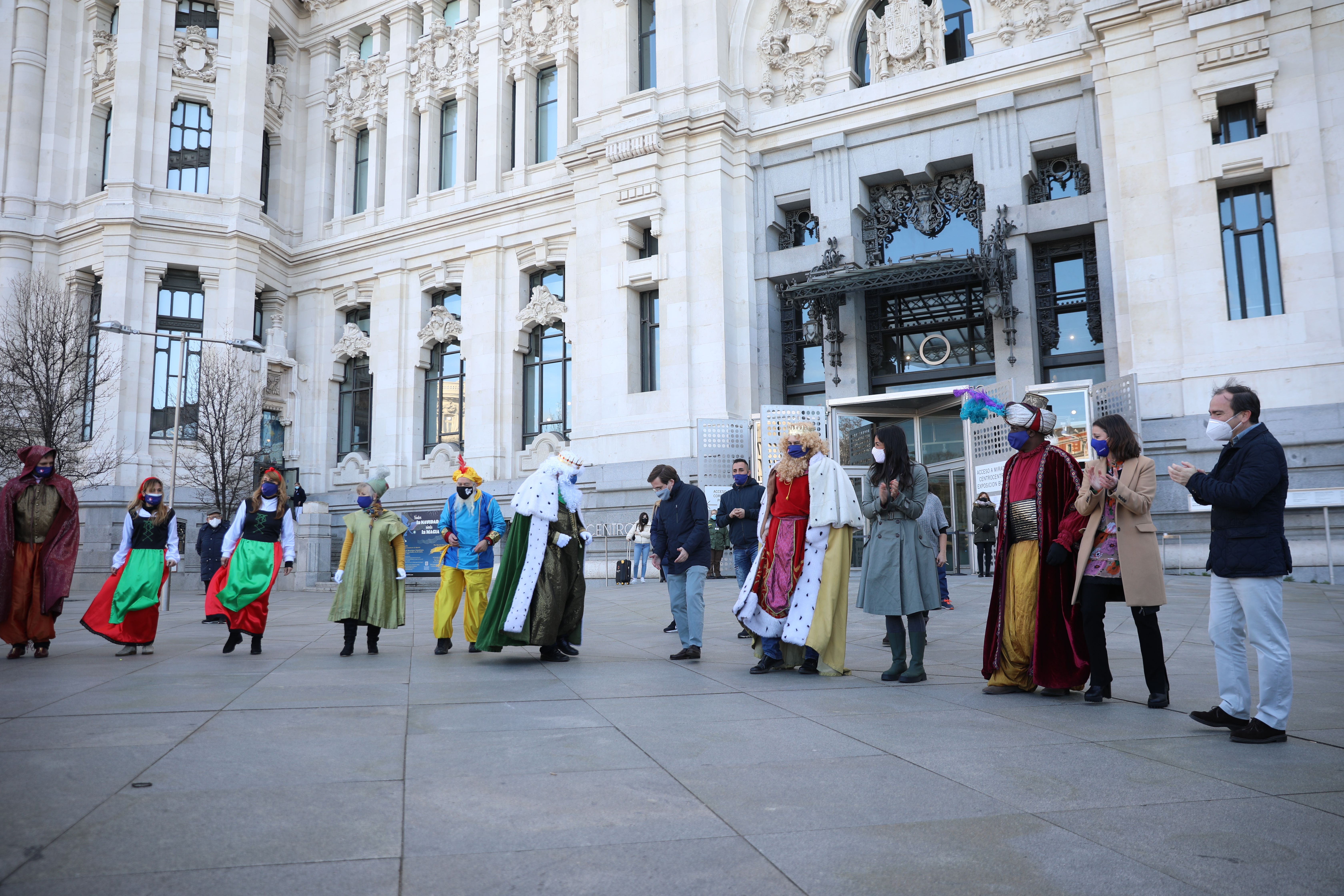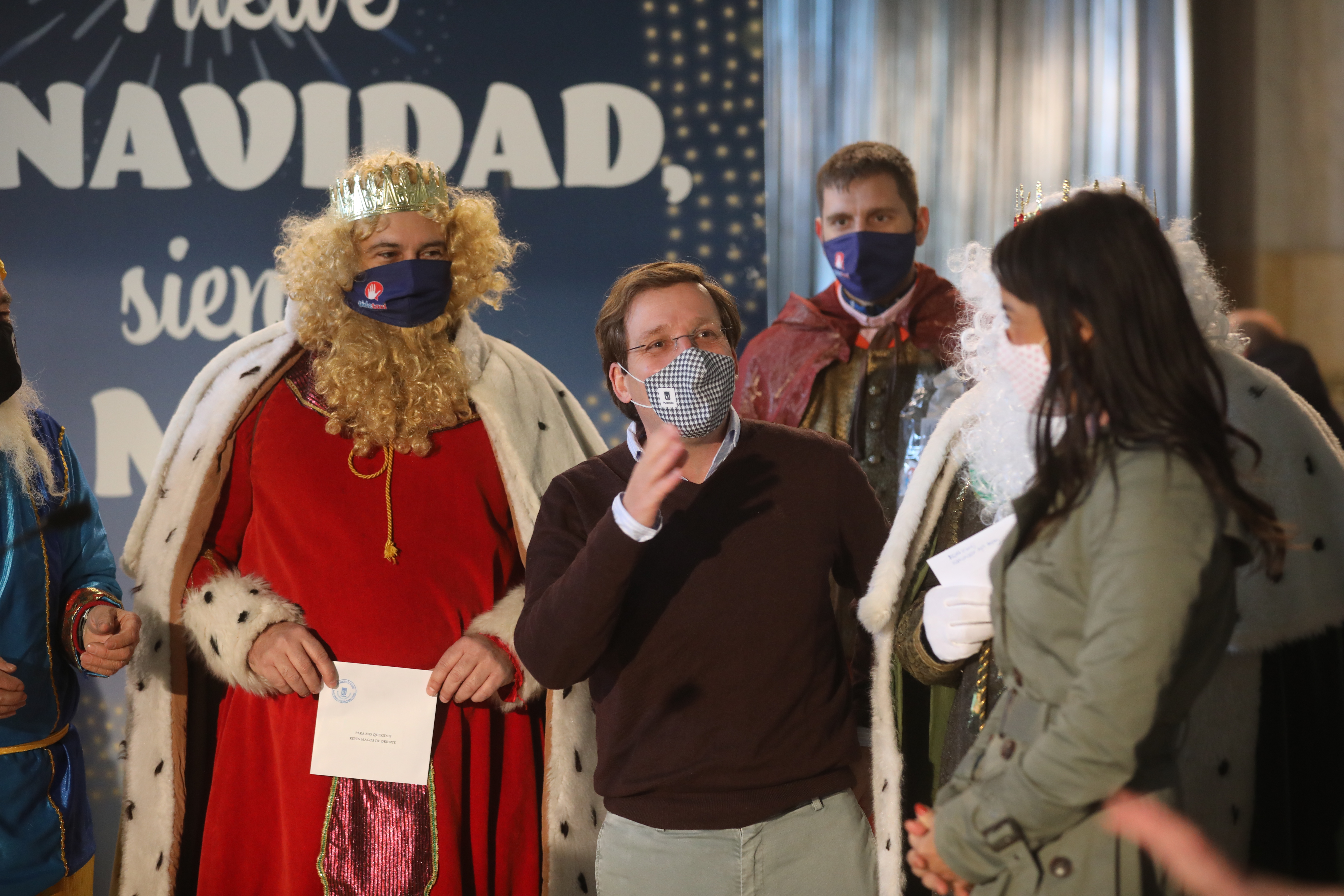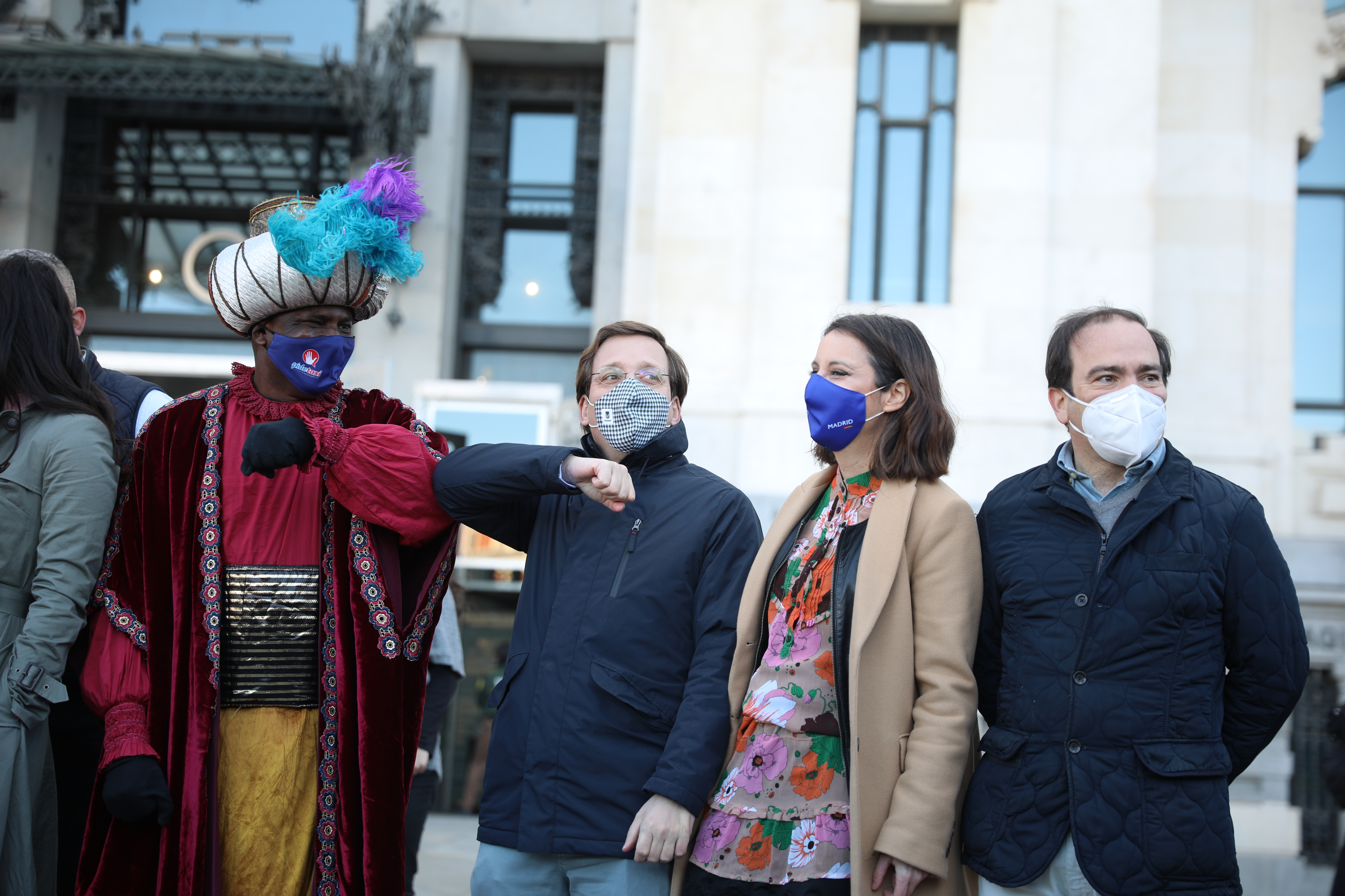 El alcalde de Madrid, José Luis Martínez-Almeida, y la vicealcaldesa, Begoña Villacis, han recibido esta mañana a los Reyes Magos de Oriente en el Palacio de Cibeles junto a los delegados de Cultura, Turismo y Deporte, Andrea Levy, y de Medio Ambiente y Movilidad, Borja Carabante. Por cuarto año consecutivo y bajo el nombre ‘La ilusión viaja en taxi’, Sus Majestades han llegado a la plaza de Cibeles en una comitiva formada por 13 taxis de la Federación Profesional del Taxi de Madrid cargados de regalos para repartir entre los niños ingresados en el Hospital Gregorio Marañón y han recogido las cartas que les han entregado los miembros del Gobierno municipal.